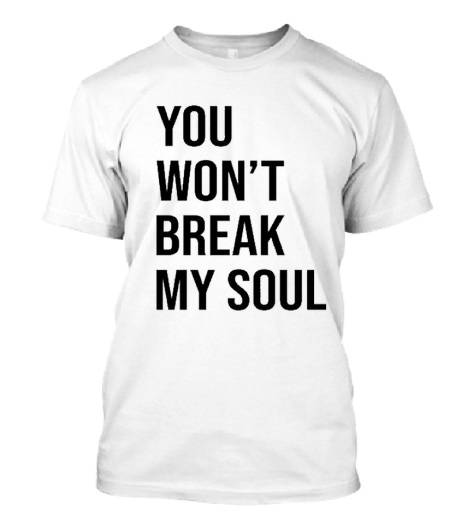 The You Won't Break My Soul Empowerment Message T-shirt is designed for everyday wear and a consistent fit. Fabric is pre-shrunk ring-spun cotton with durable stitching. See the size chart below for exact measurements.