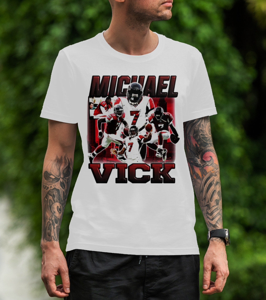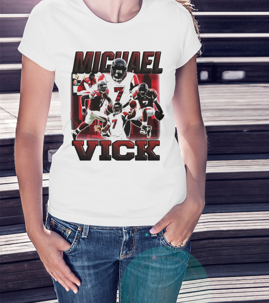 Michael Vick Atlanta Falcons Football Number 7 Quarterback Action Collage T-Shirt