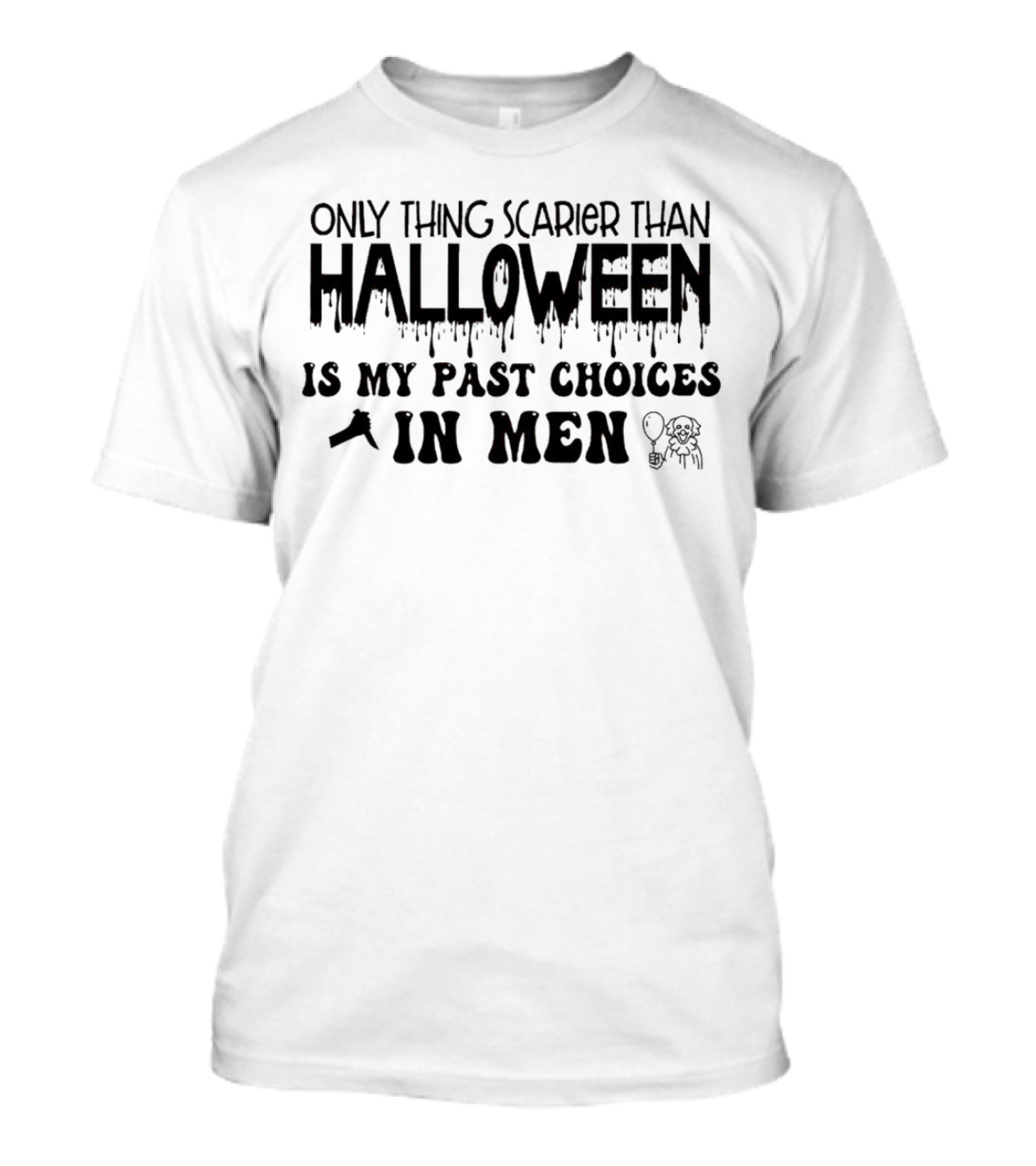The Only Thing Scarier Than Halloween Is My Past Choices in Men with Axe and Clown Balloons T-shirt is designed for everyday wear and a consistent fit. Fabric is pre-shrunk ring-spun cotton with durable stitching. See the size chart below for exact measurements.