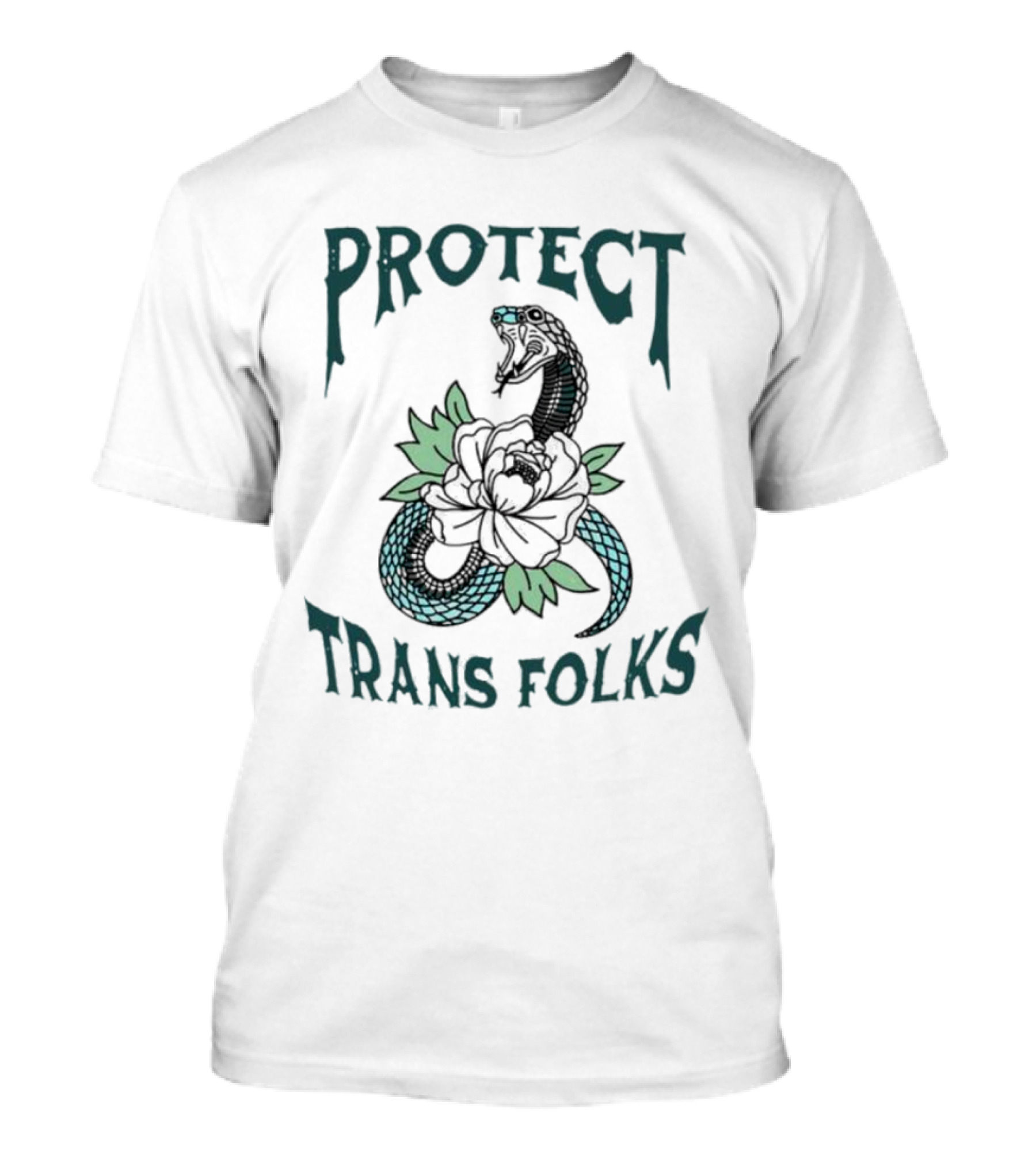 The Protect Trans Folks New Snake and Flower T-shirt is designed for everyday wear and a consistent fit. Fabric is pre-shrunk ring-spun cotton with durable stitching. See the size chart below for exact measurements.