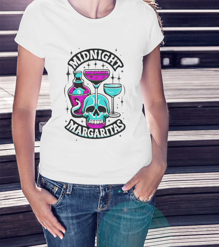 Midnight Margaritas Skull Neon Cocktails T-Shirt