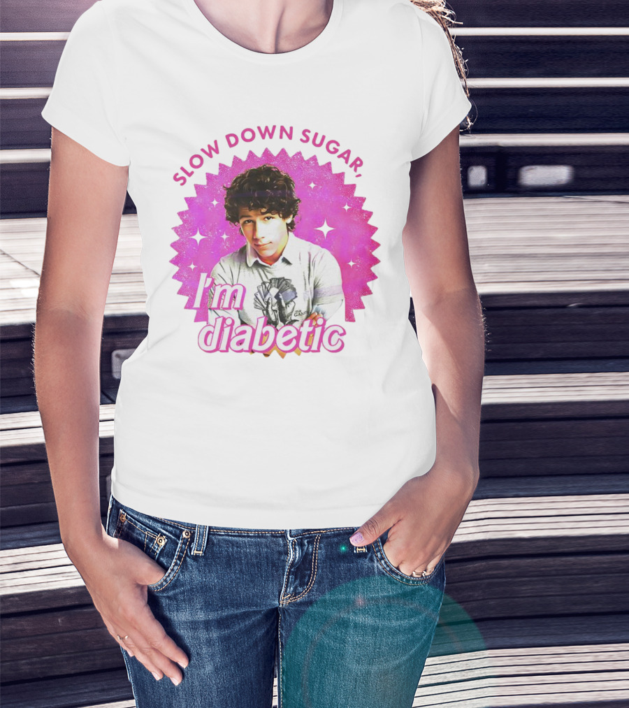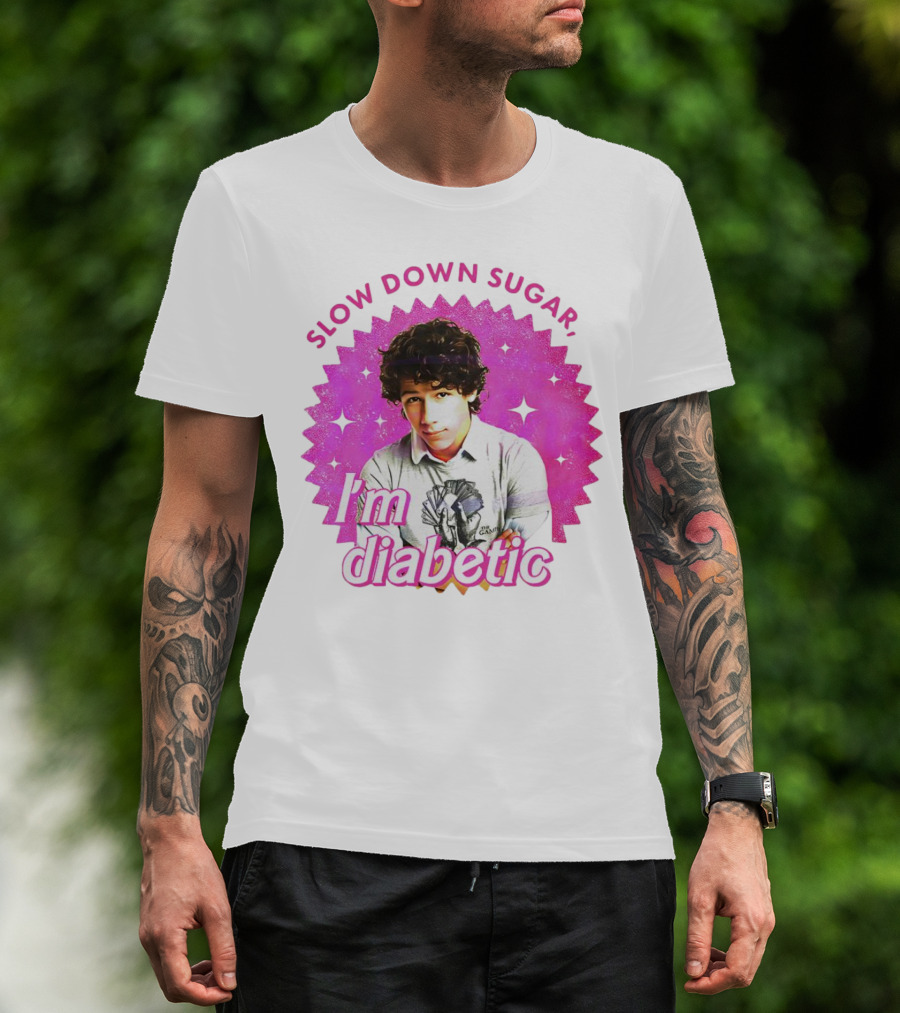Nick Jonas Slow Down Sugar I'm Diabetic Pink Starburst T-Shirt