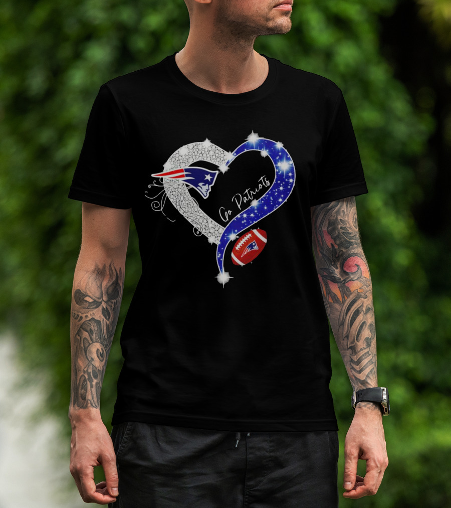New England Patriots Go Patriots Diamond Heart Football T-Shirt