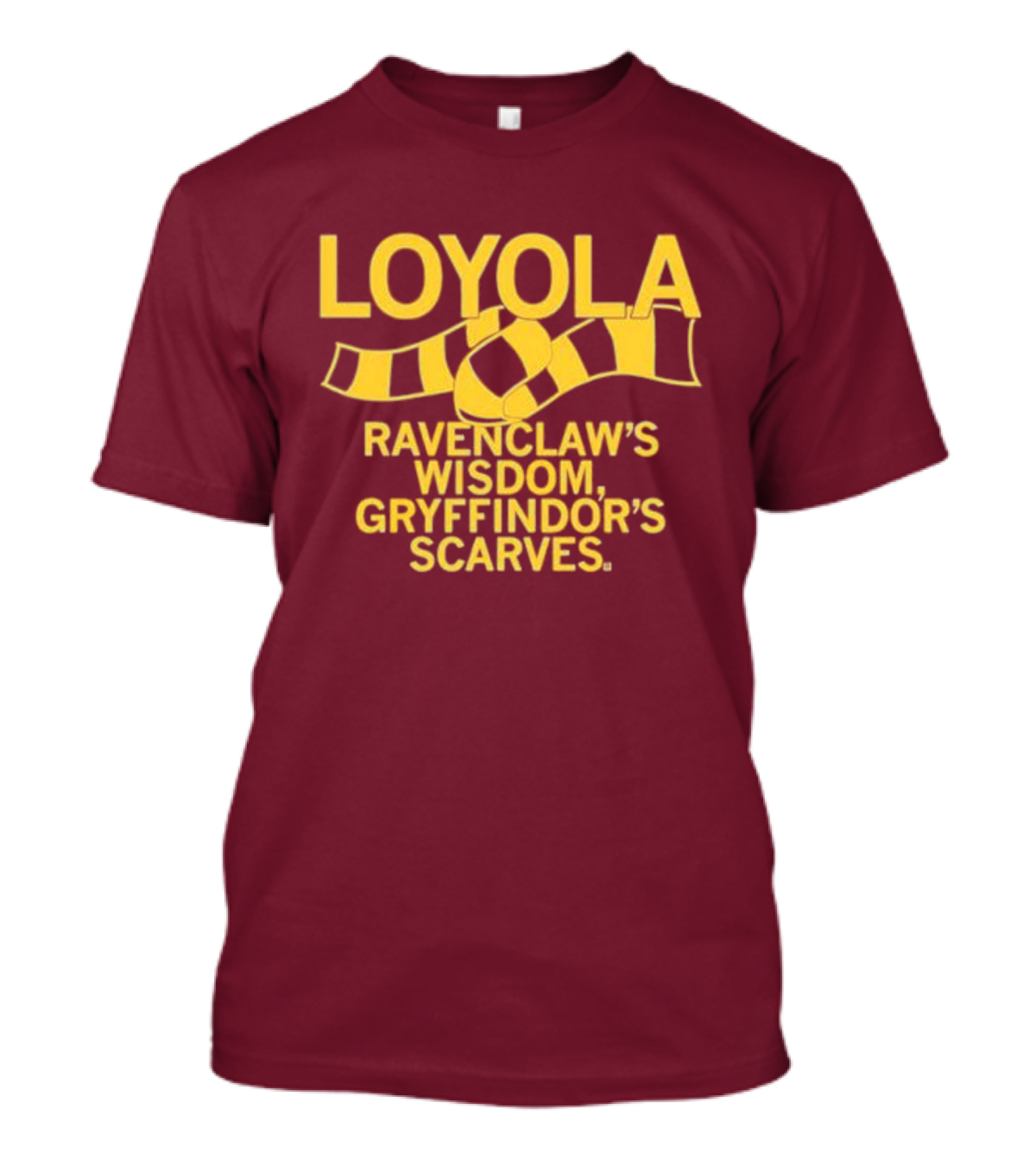 The LOYOLA Ravenclaw's Wisdom Gryffindor's Scarves T-shirt is designed for everyday wear and a consistent fit. Fabric is pre-shrunk ring-spun cotton with durable stitching. See the size chart below for exact measurements.