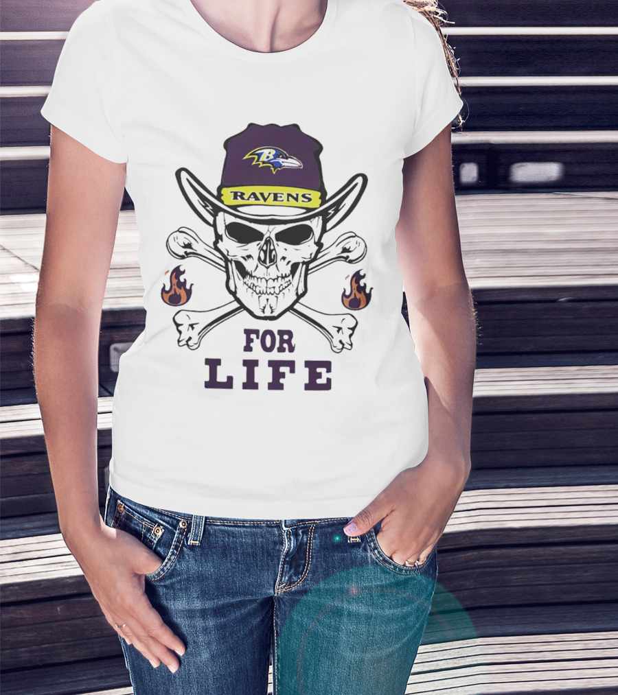 Baltimore Ravens Skull With Flames For Life T-Shirt