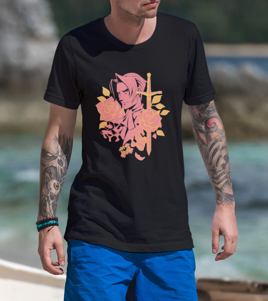 Miles Edgeworth King Of Prosecutors Sword Roses T-Shirt