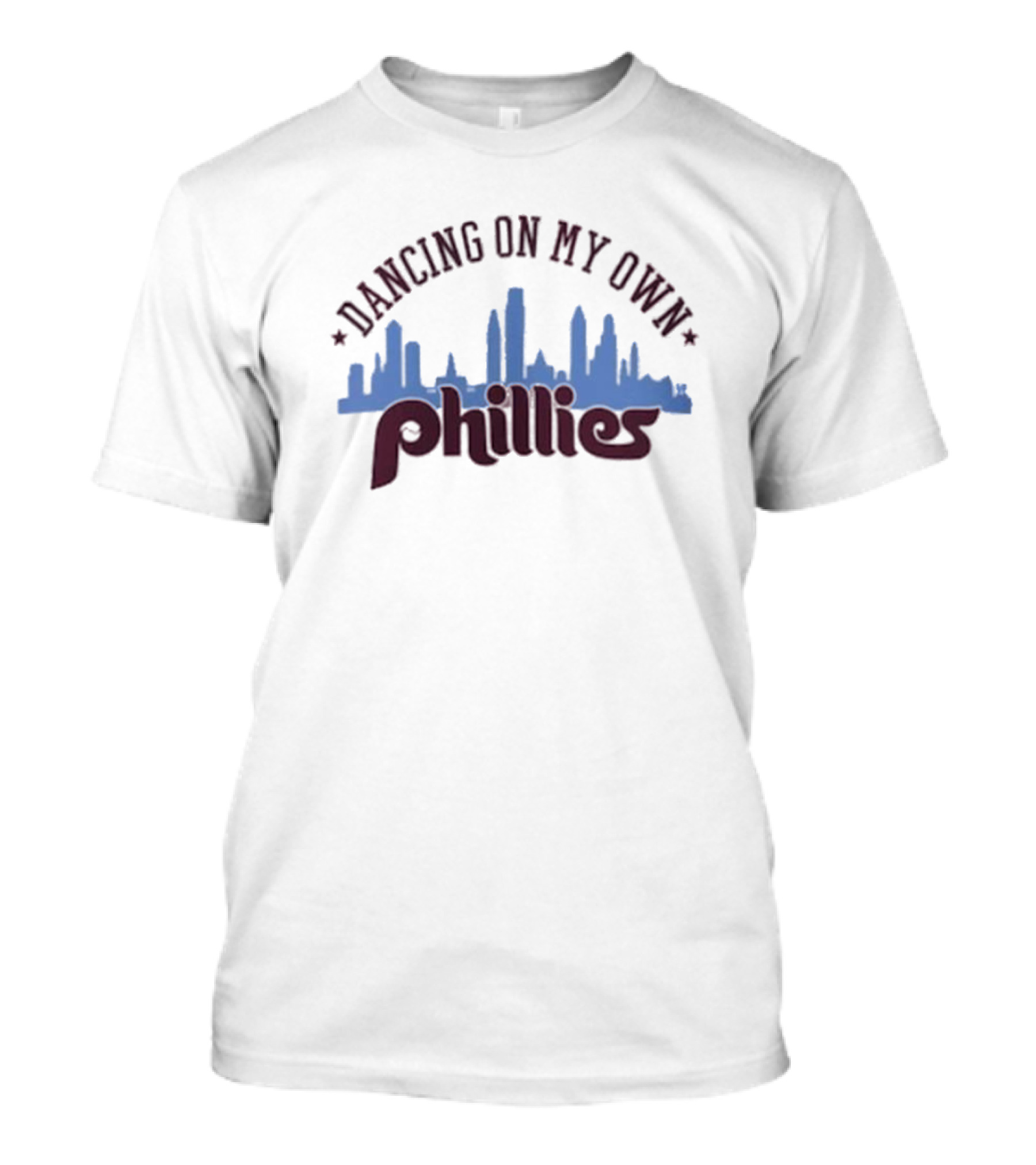 The Dancing On My Own Phillies Skyline T-shirt is designed for everyday wear and a consistent fit. Fabric is pre-shrunk ring-spun cotton with durable stitching. See the size chart below for exact measurements.