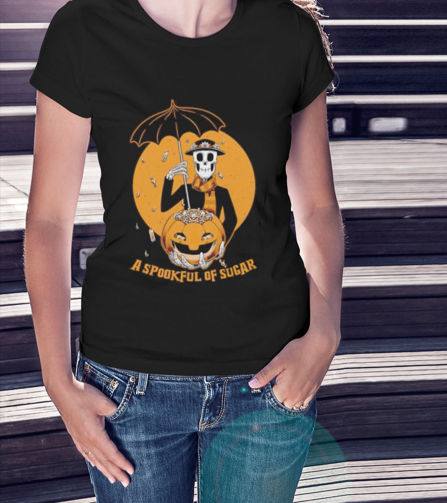 A Spookful Of Sugar Skeleton With Umbrella And Pumpkin Halloween T-Shirt