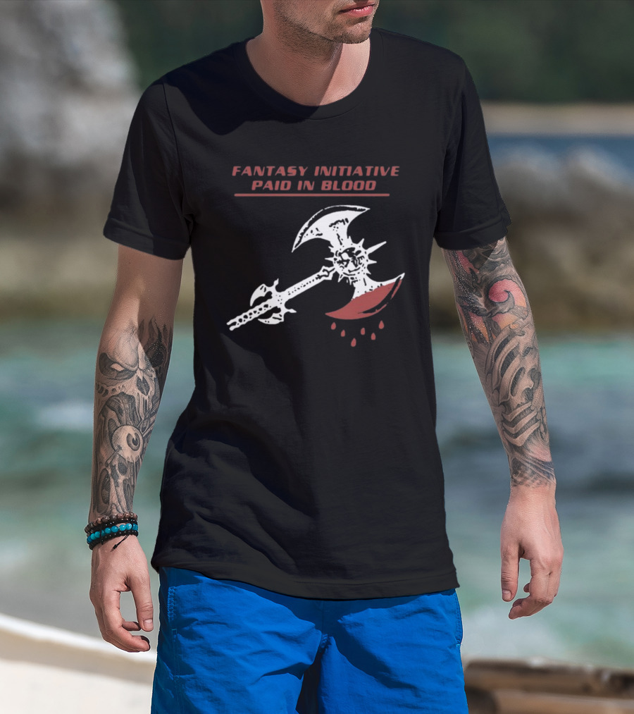 Fantasy Initiative Paid In Blood Battle Axe American Fantasy T-Shirt