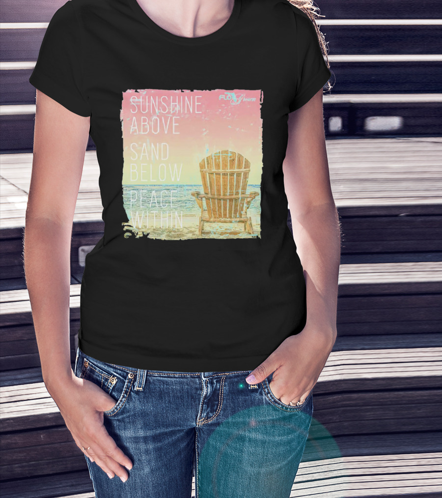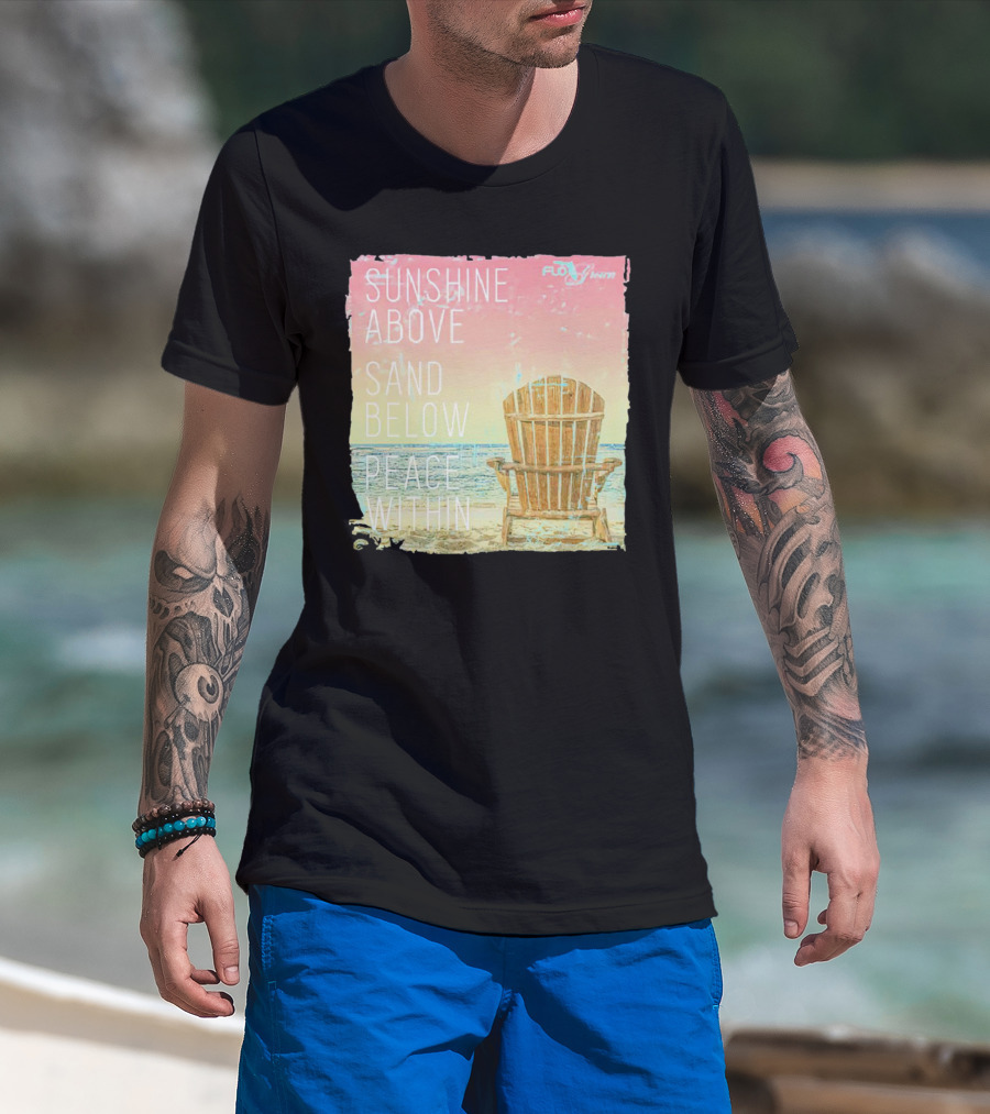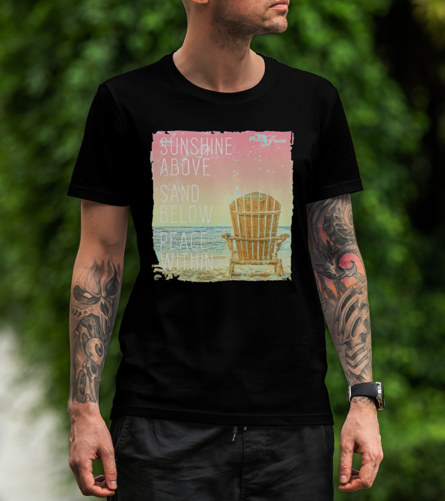 The Sunshine Above Sand Below Peace Within Beach Chair Tranquility T-shirt is designed for everyday wear and a consistent fit. Fabric is pre-shrunk ring-spun cotton with durable stitching. See the size chart below for exact measurements.
