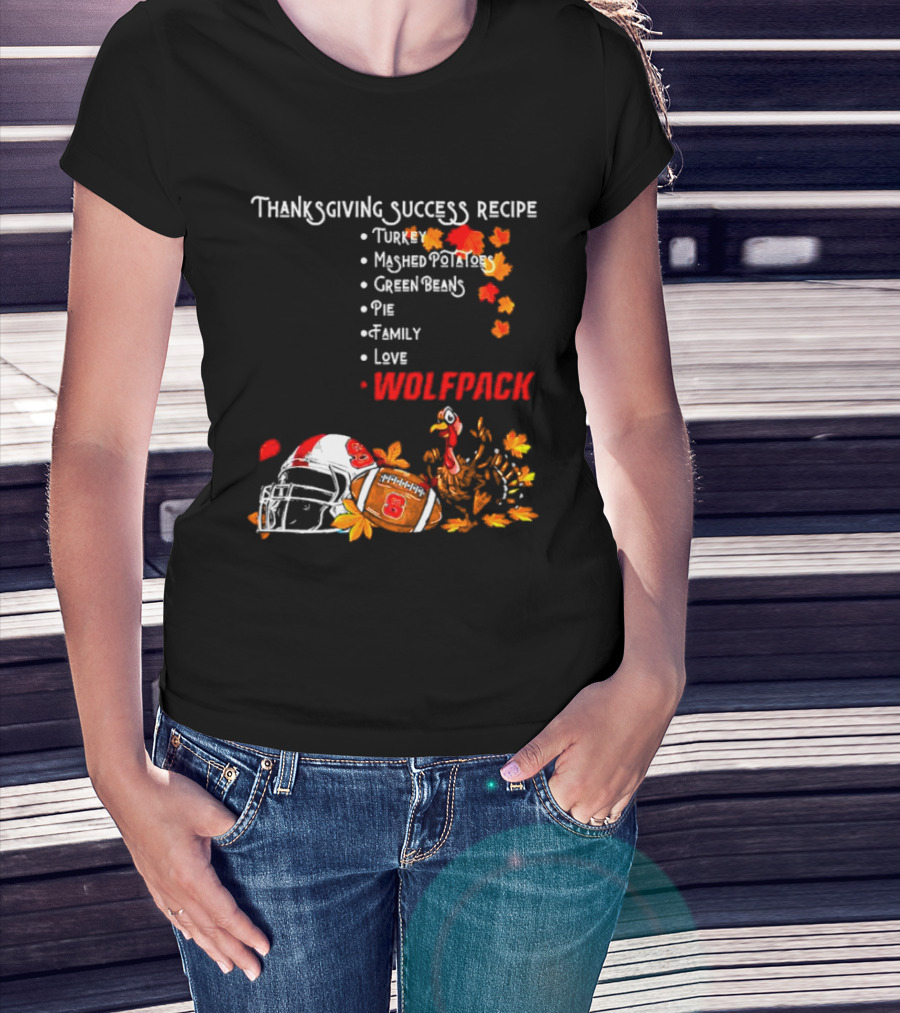 Thanksgiving Success Recipe NC State Wolfpack Turkey Family Football T-Shirt