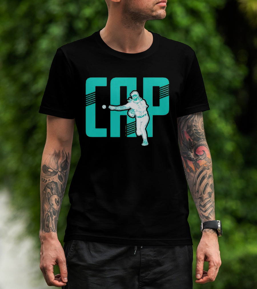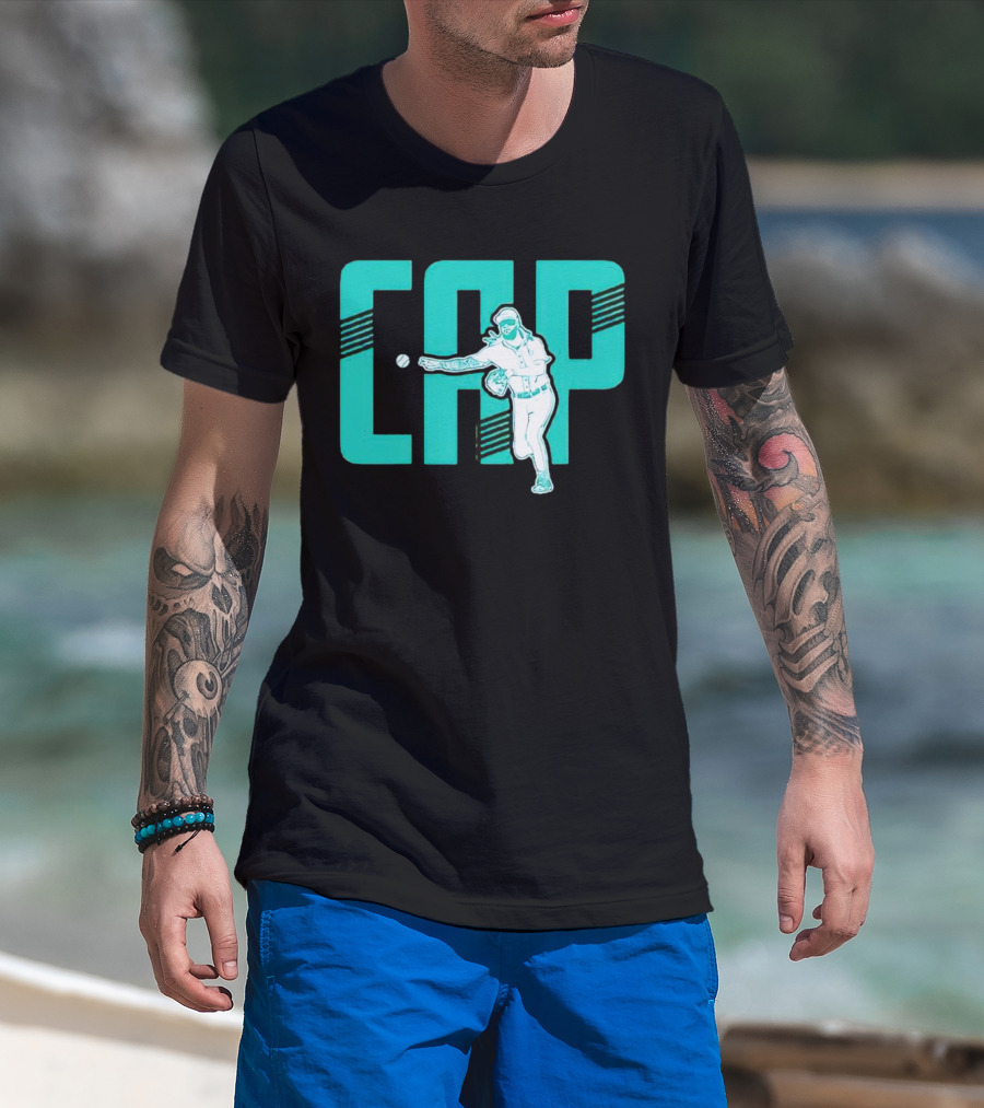The Seattle Mariners Cap Pitching Player T-shirt is designed for everyday wear and a consistent fit. Fabric is pre-shrunk ring-spun cotton with durable stitching. See the size chart below for exact measurements.