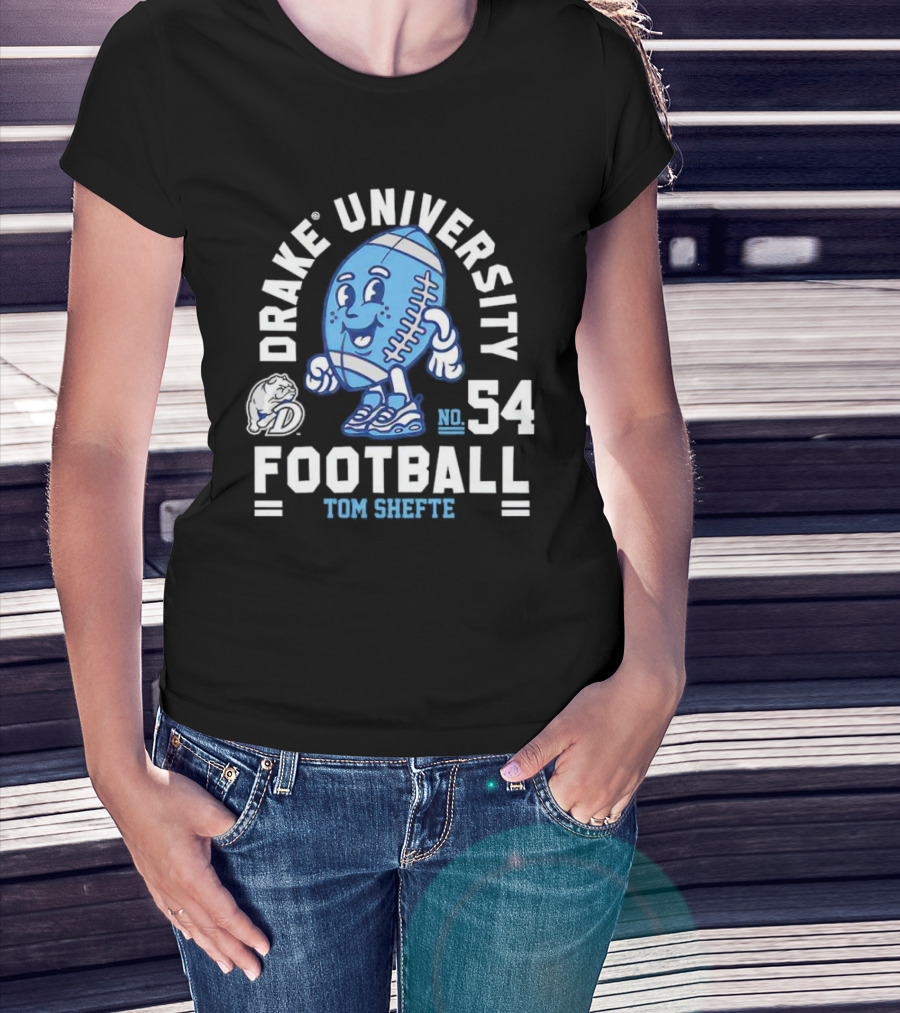 The Drake University Football No 54 Tom Shefte T-shirt is designed for everyday wear and a consistent fit. Fabric is pre-shrunk ring-spun cotton with durable stitching. See the size chart below for exact measurements.