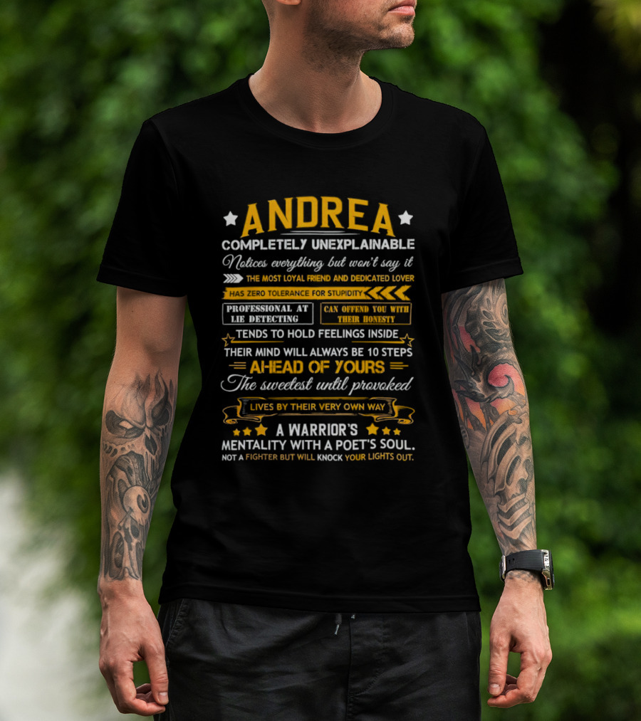 ANDREA Completely Unexplainable Notices Everything Loyal Friend Lover Zero Tolerance Professional Lie Detecting Warrior Poet T-Shirt