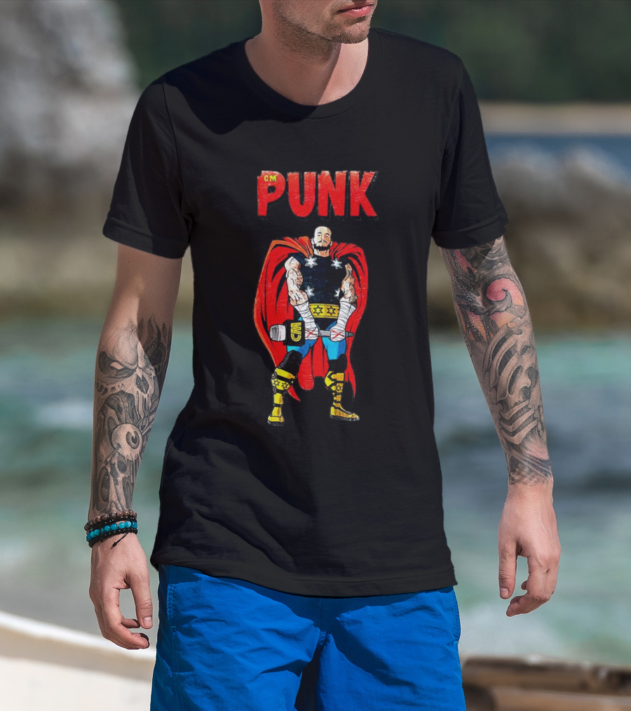 CM Punk Superhero Cape And Thunder Hammer Pose T-Shirt