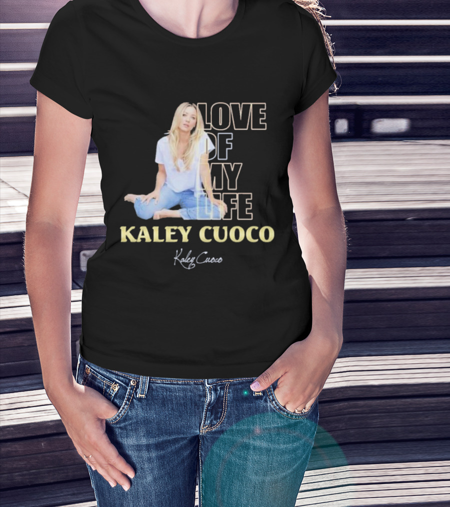 The Kaley Cuoco Love of My Life Sitting Casual Jeans Pose T-shirt is designed for everyday wear and a consistent fit. Fabric is pre-shrunk ring-spun cotton with durable stitching. See the size chart below for exact measurements.