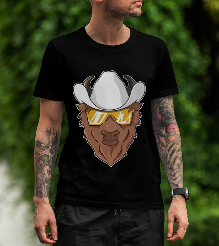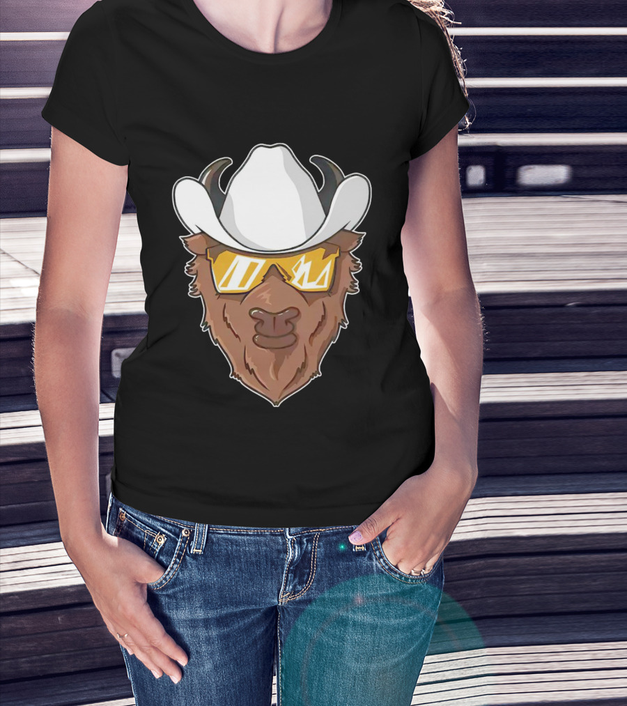 Cartoon Buffalo Wearing Cowboy Hats And Sunglasses T-Shirt