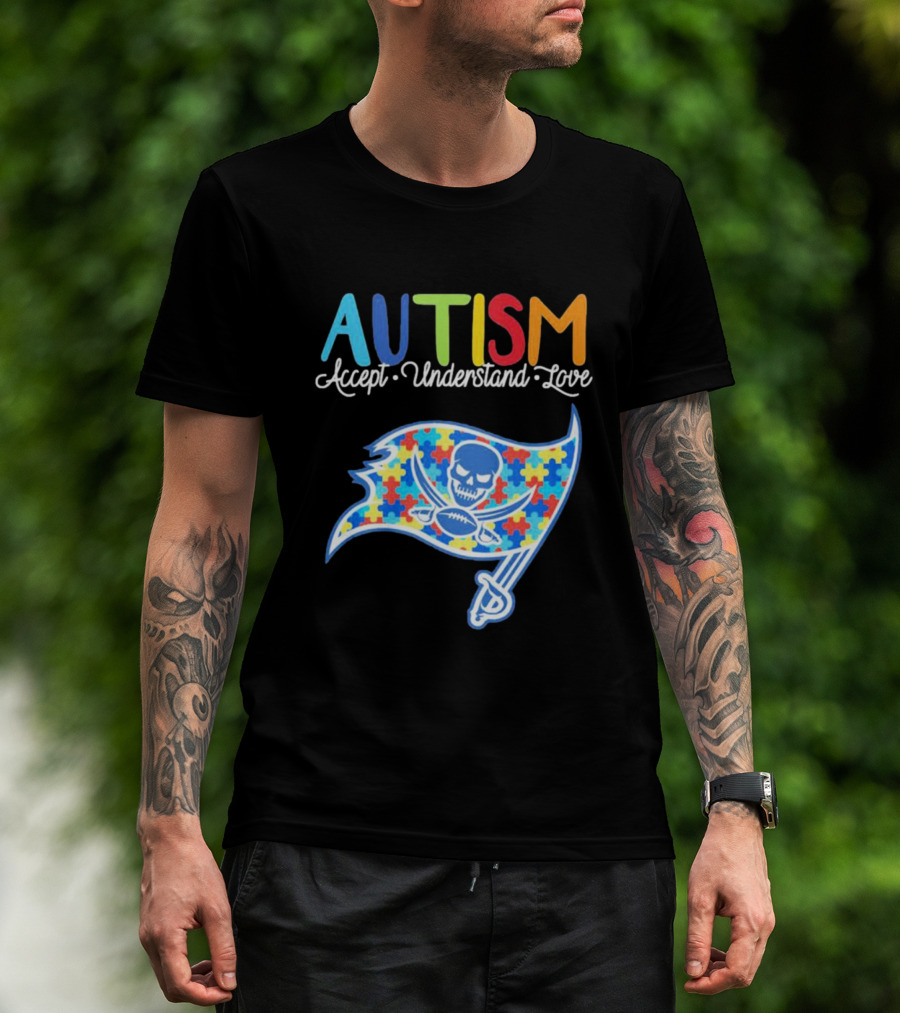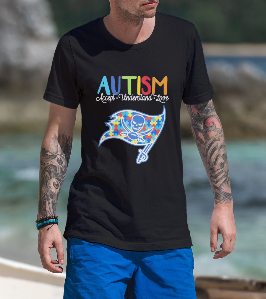 Tampa Bay Buccaneers Autism Awareness Accept Understand Love NFL Puzzle Flag T-Shirt