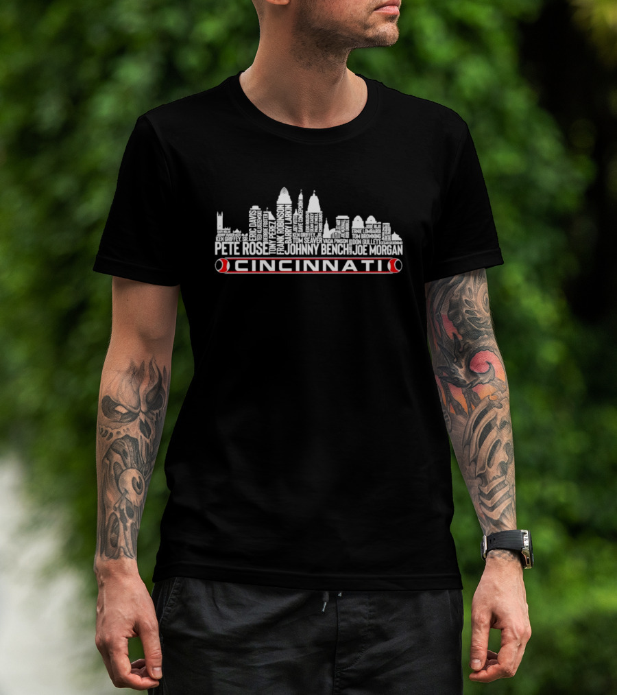 Cincinnati Skyline Baseball Legends Pete Rose Johnny Bench Joe Morgan Ken Griffey Tom Seaver T-Shirt