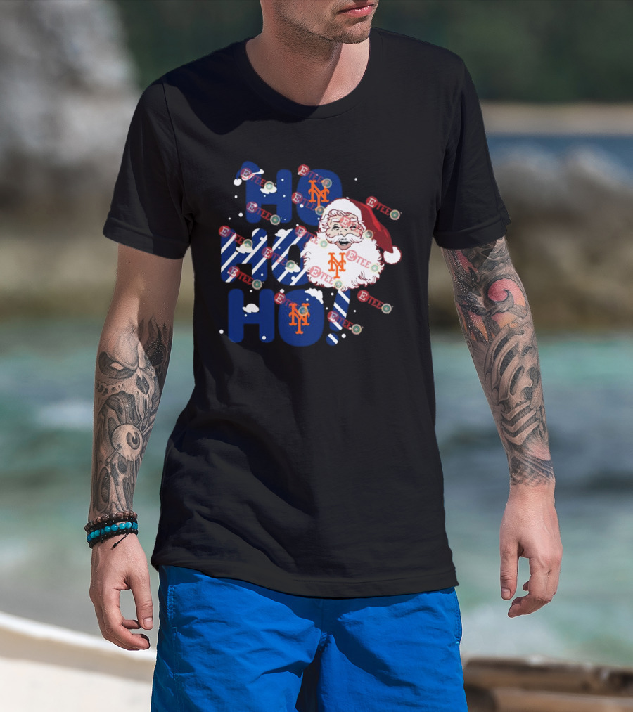 New York Mets Santa Claus Ho Ho Ho Christmas Festive T-Shirt