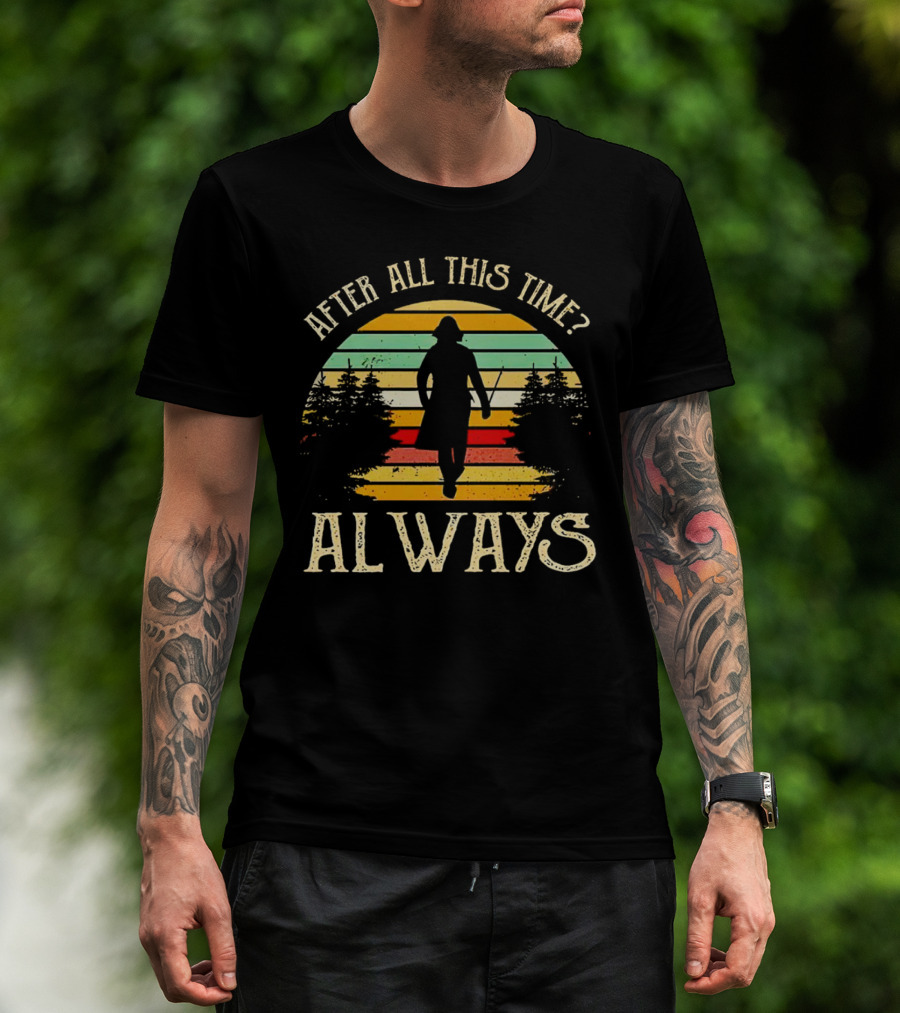 The After All This Time Always Vintage Sunset T-shirt is designed for everyday wear and a consistent fit. Fabric is pre-shrunk ring-spun cotton with durable stitching. See the size chart below for exact measurements.