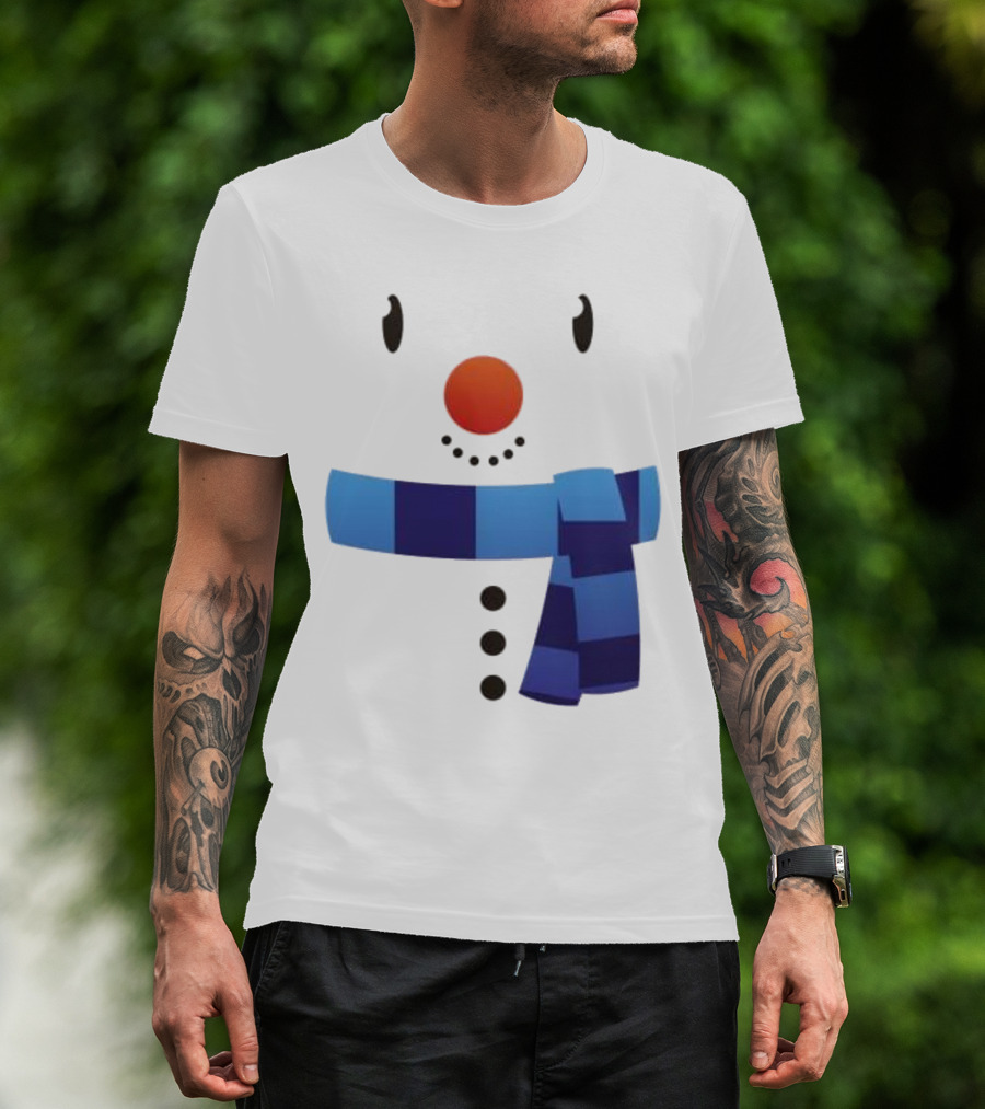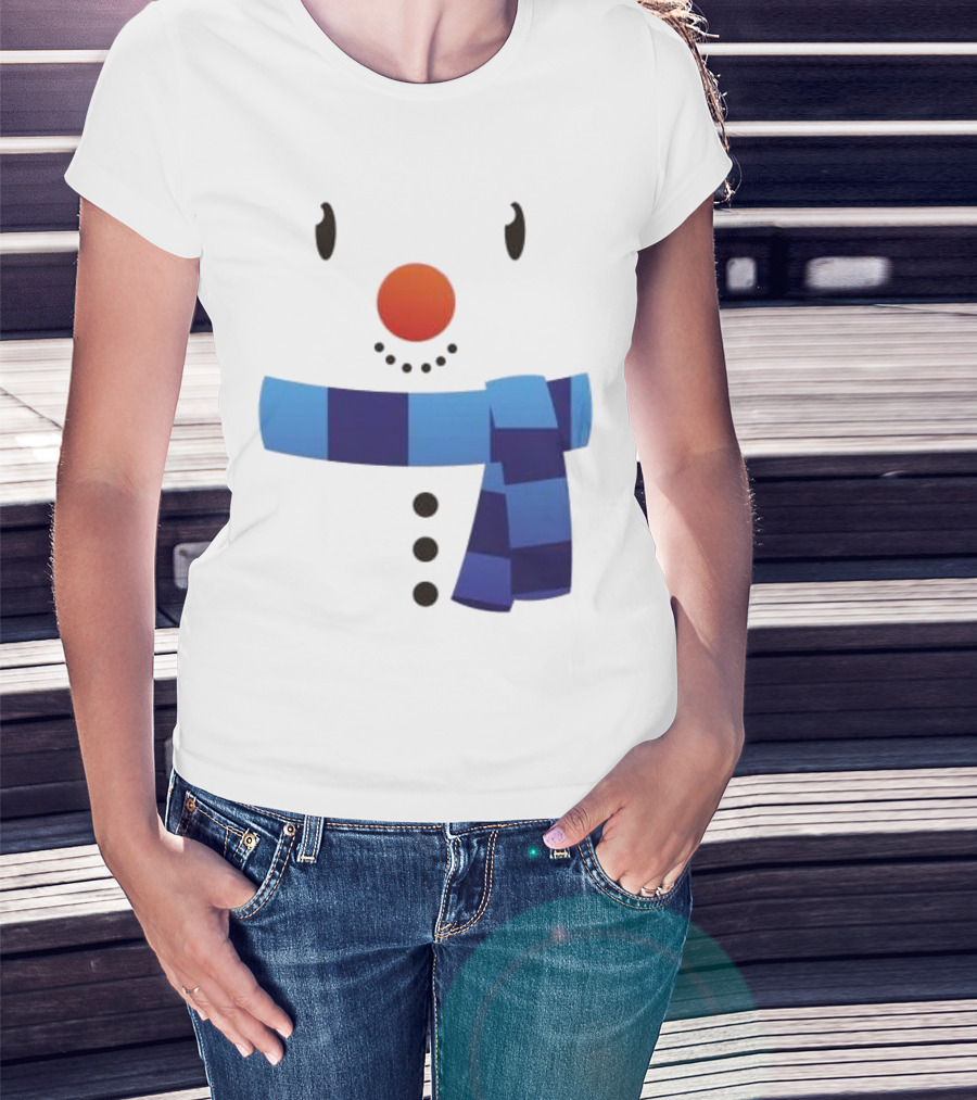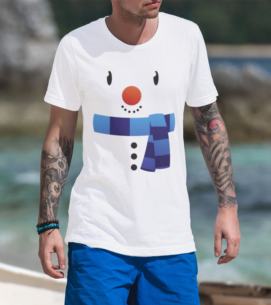 Snowman Suit Christmas Blue Scarf Simple Face T-Shirt