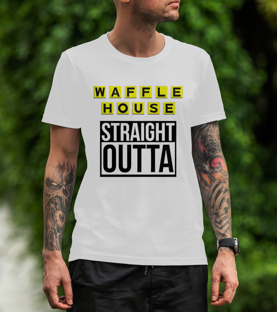 The Waffle House Straight Outta Compton T-shirt is designed for everyday wear and a consistent fit. Fabric is pre-shrunk ring-spun cotton with durable stitching. See the size chart below for exact measurements.