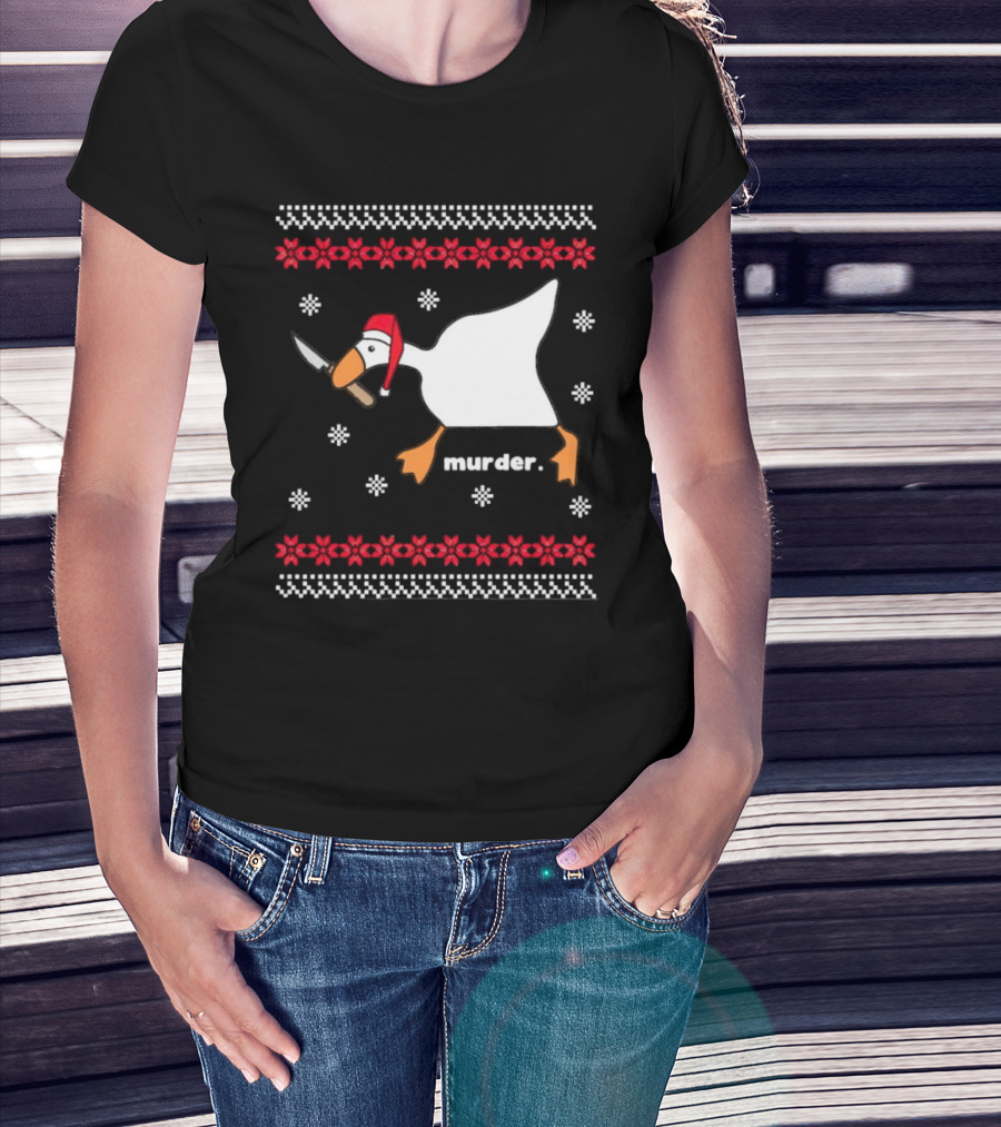 Goose With Knife Santa Hat Murder Christmas T-Shirt