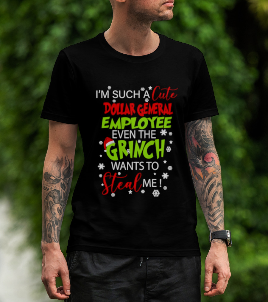 I’m Such A Cute Dollar General Employee Even The Grinch Wants To Steal Me Snowflakes Santa Hat T-Shirt