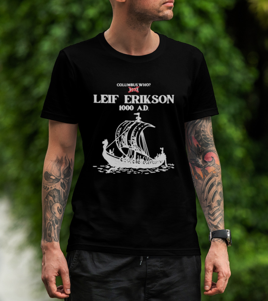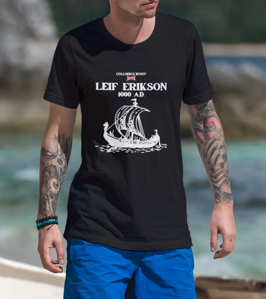 Columbus Who Leif Erikson 1000 AD Viking Ship Classic Exploration Typography T-Shirt