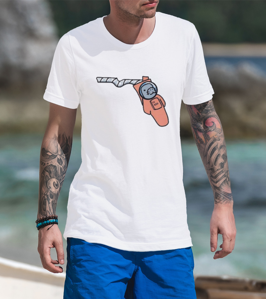 Florida Astronauts Manatee In Space Helmet Floating In Orange Suit T-Shirt