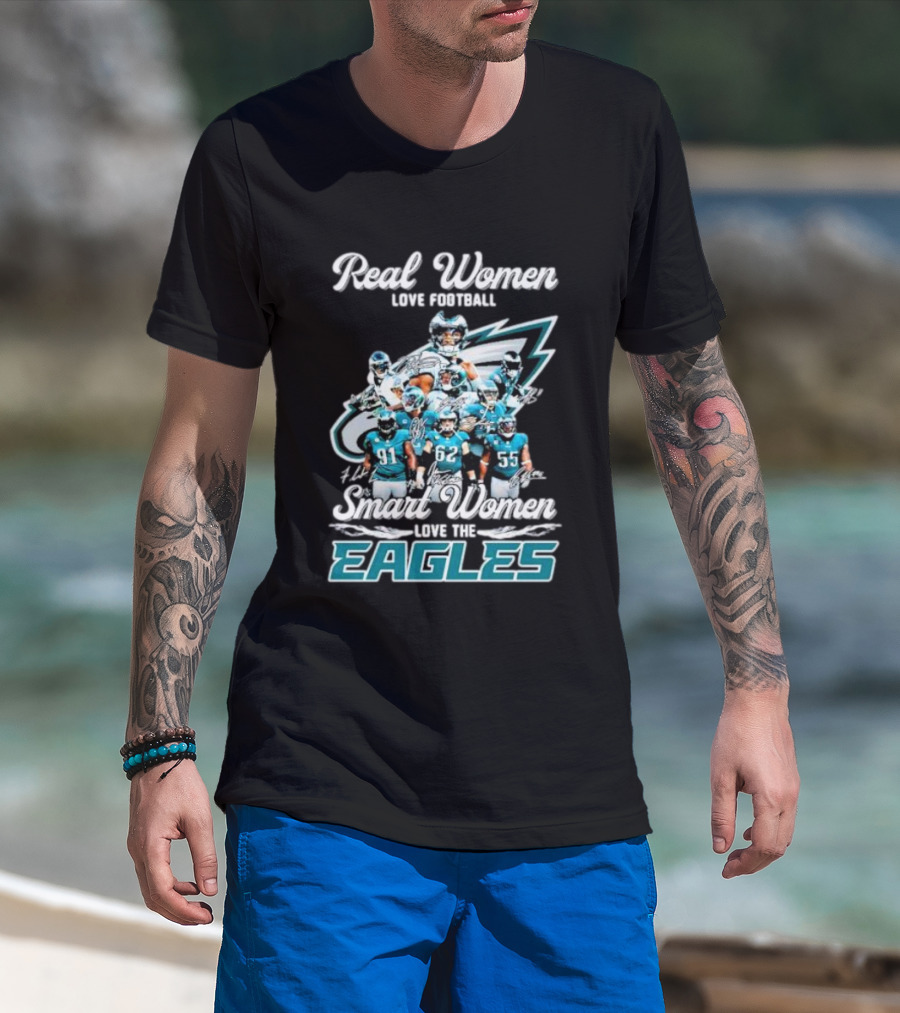 Real Women Love Football Smart Women Love The Eagles Signatures T-Shirt