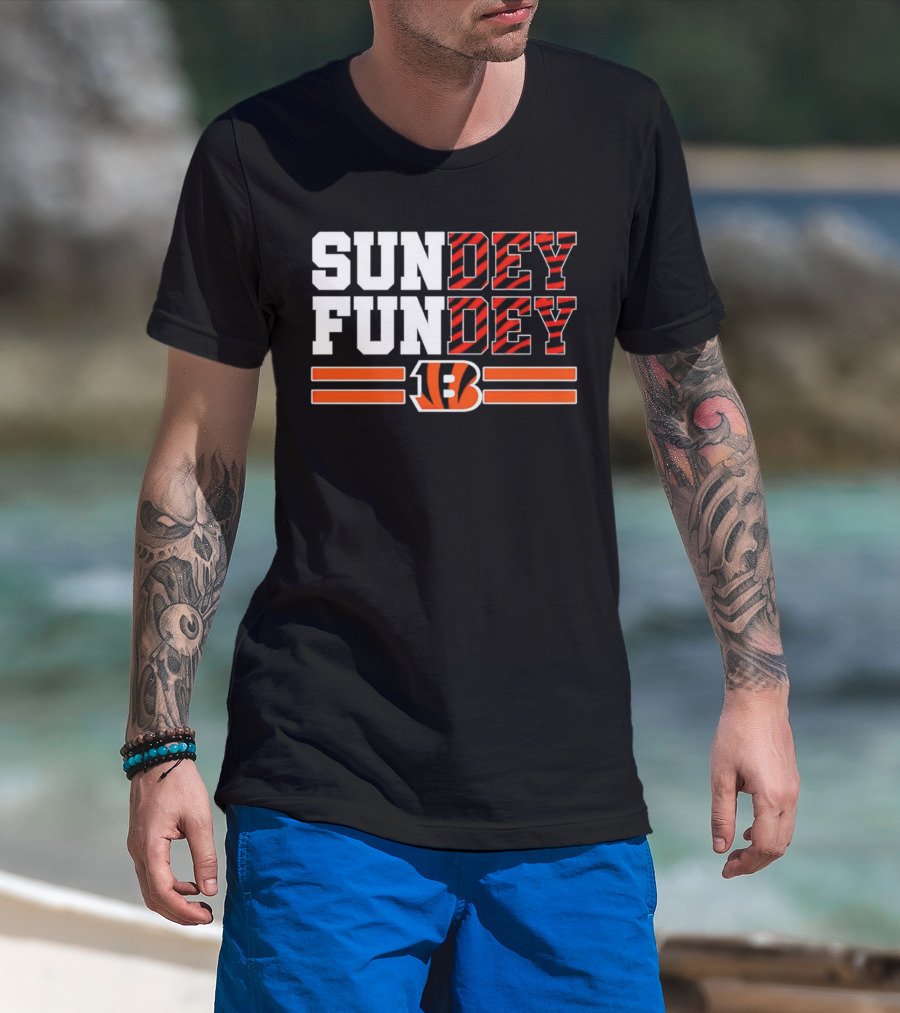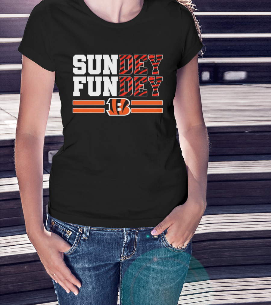Cincinnati Bengals Sundey Funday B Logo Orange Stripes T-Shirt