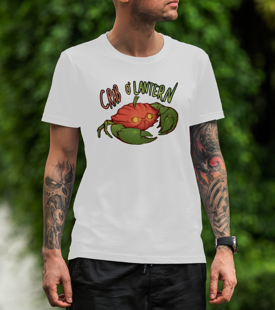 The Crab O' Lantern Pumpkin Crab Creature with Glowing Eyes T-shirt is designed for everyday wear and a consistent fit. Fabric is pre-shrunk ring-spun cotton with durable stitching. See the size chart below for exact measurements.