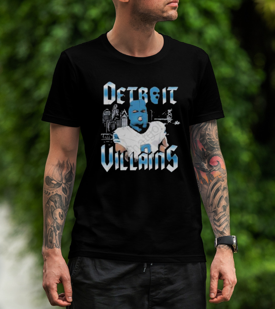 Detroit Villains Football Blue Masked Player Featuring City Skyline T-Shirt
