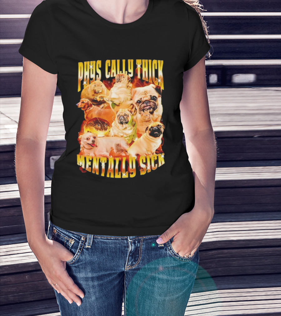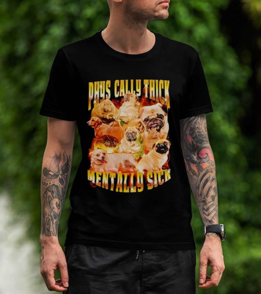 Physically Thick Mentally Sick Capybara Dog Cat Frog Pug Collage T-Shirt