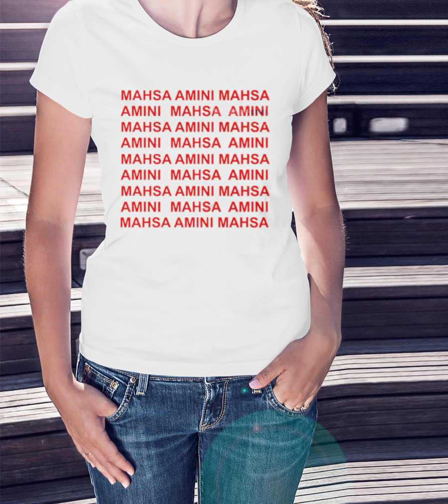 Mahsa Amini Red Repeated Text T-Shirt