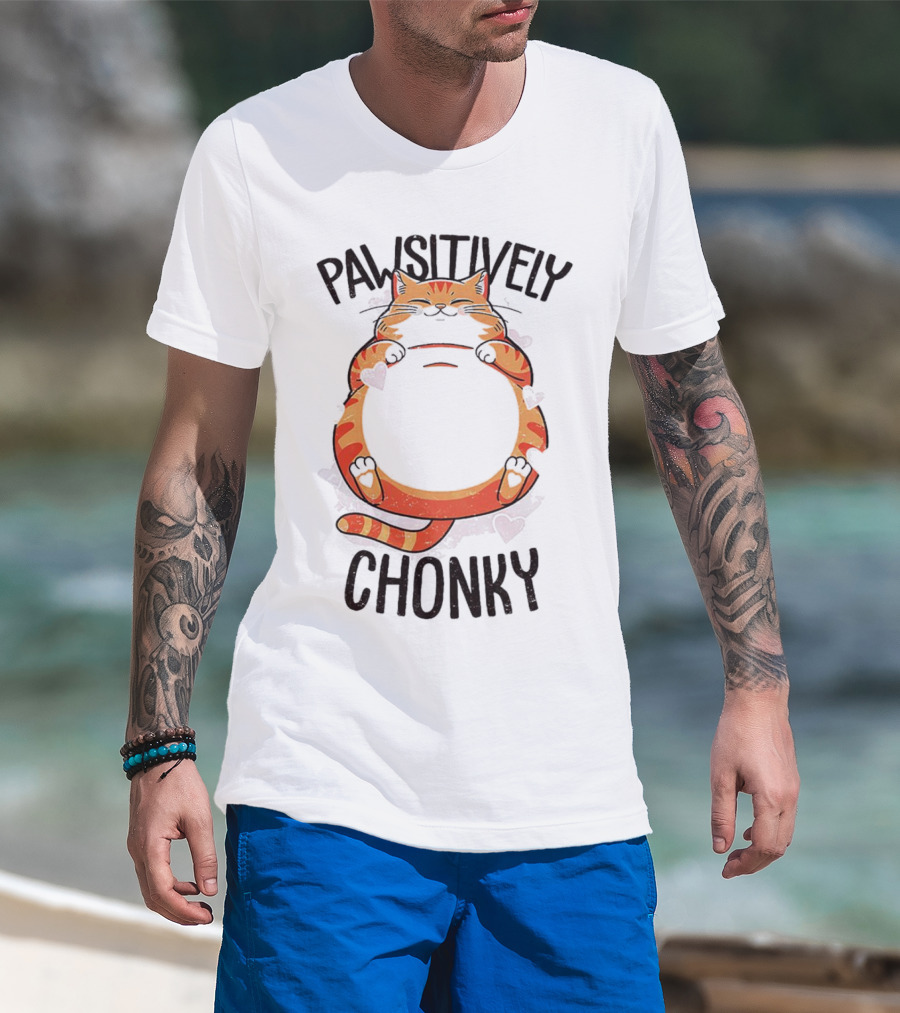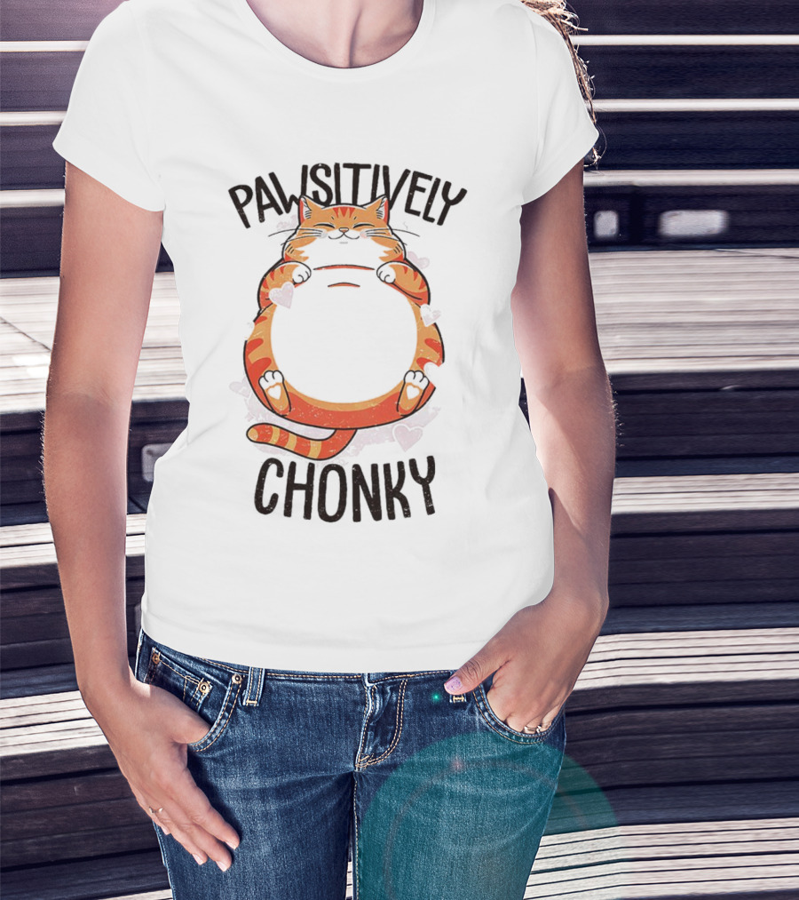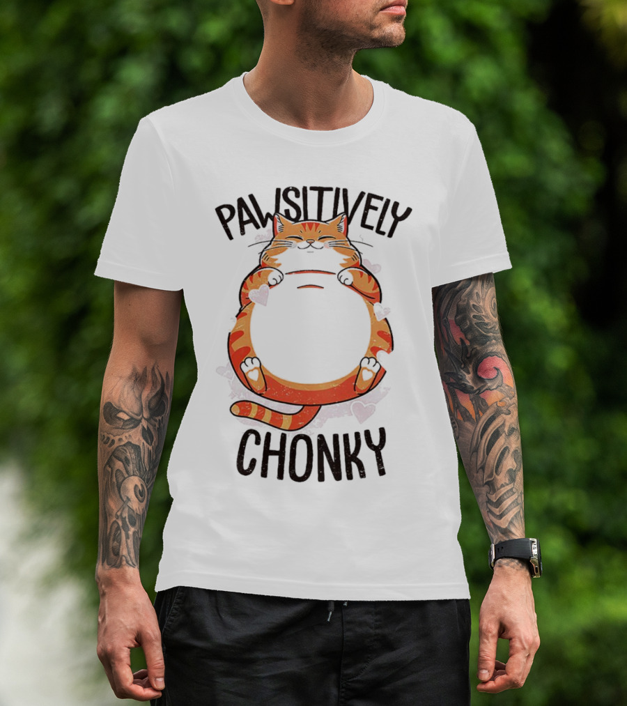 Pawsitively Chonky Cat With Hearts And Smiling Orange Tabby T-Shirt