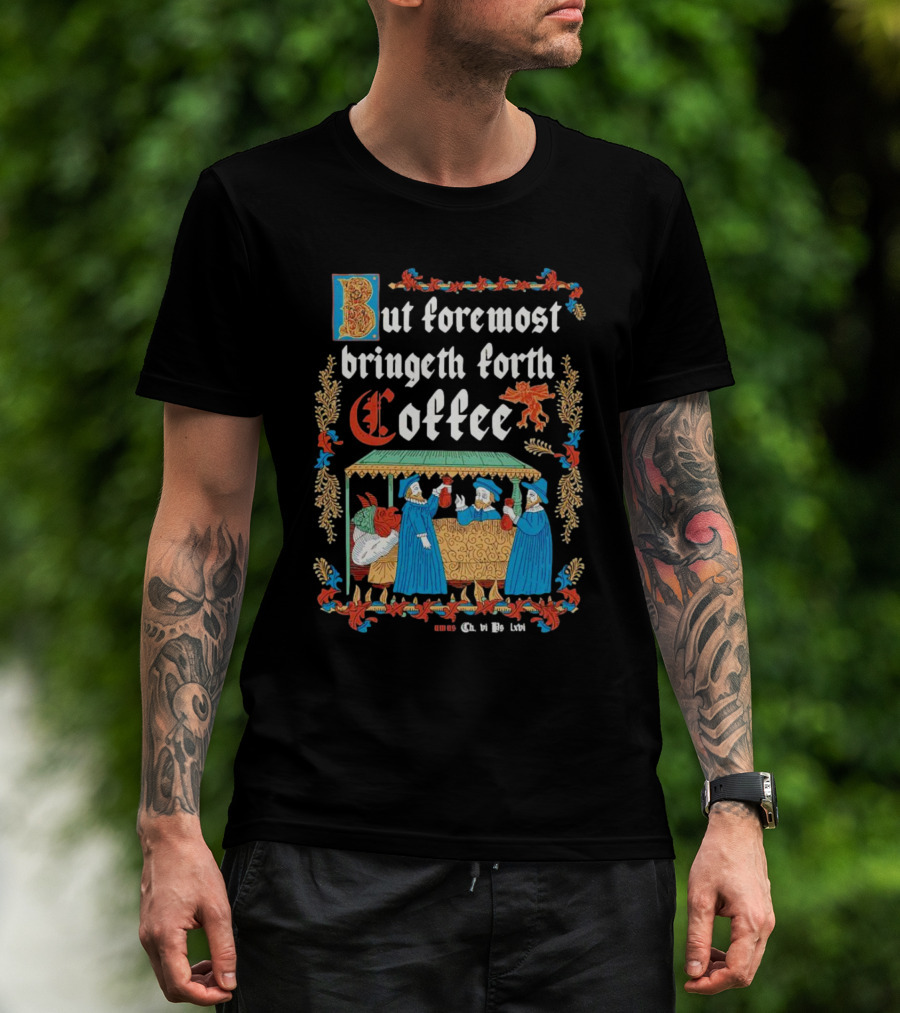 But Foremost Bringeth Forth Coffee Illuminated Medieval T-Shirt