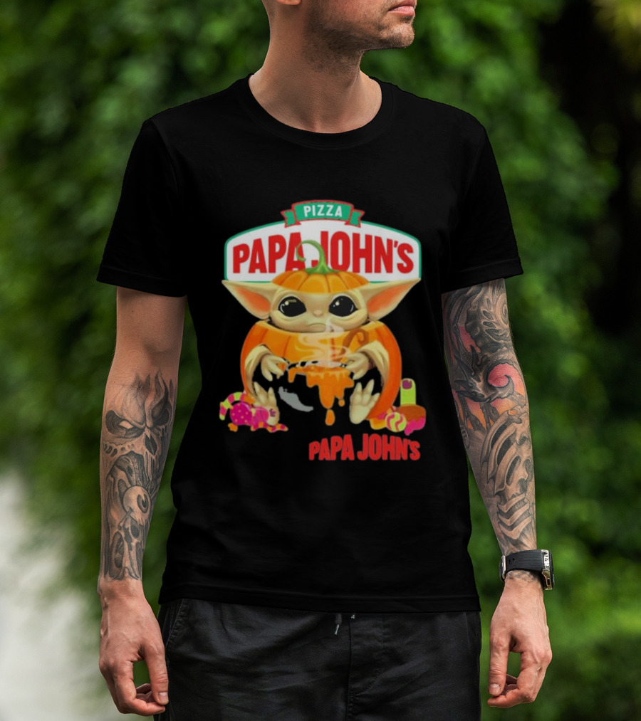 Papa John's Pizza Baby Yoda Pumpkin Halloween T-Shirt