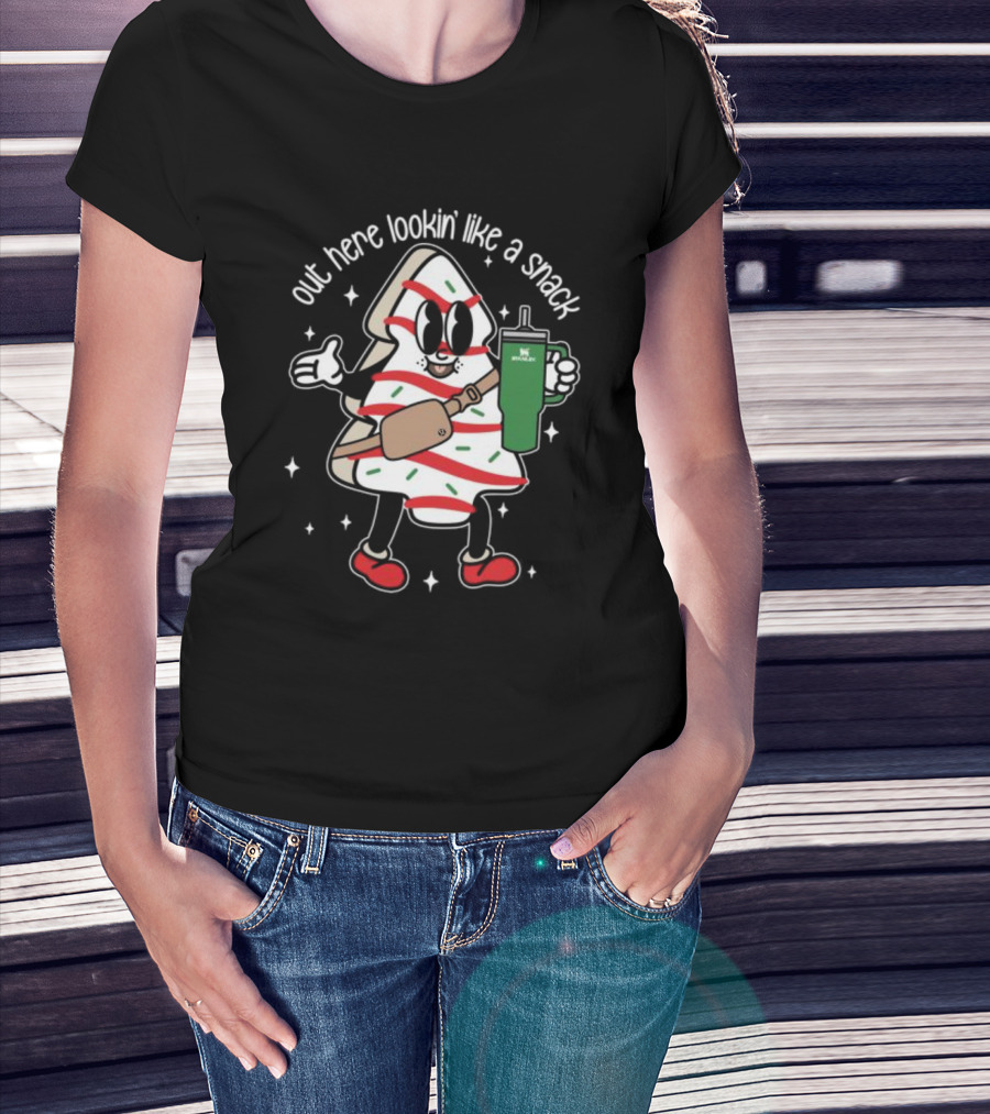 Out Here Looking Like A Snack Cute Boo Jee Xmas Tree With Drink And Bag T-Shirt