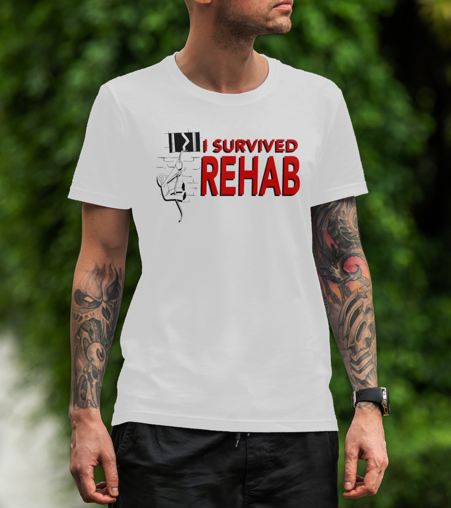 I Survived Rehab Red Text With Climbing Wall Background T-Shirt