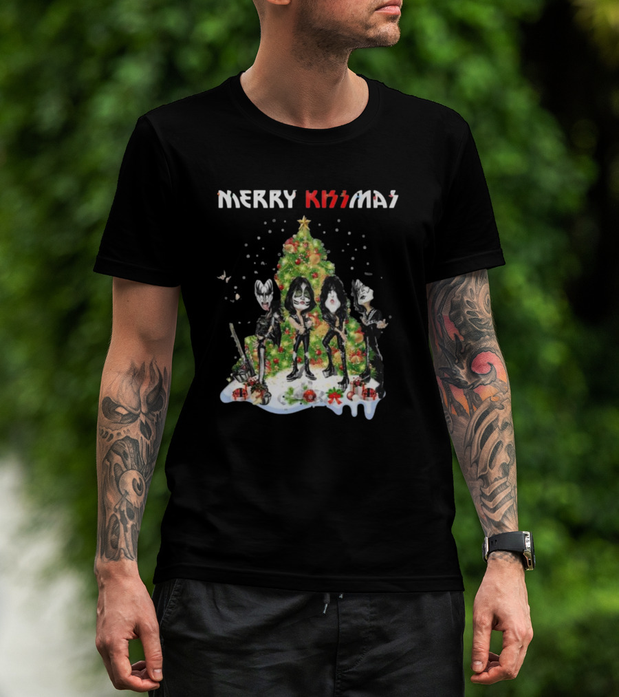 Merry Kissmas Kiss Rock Band Christmas Tree Holiday T-Shirt