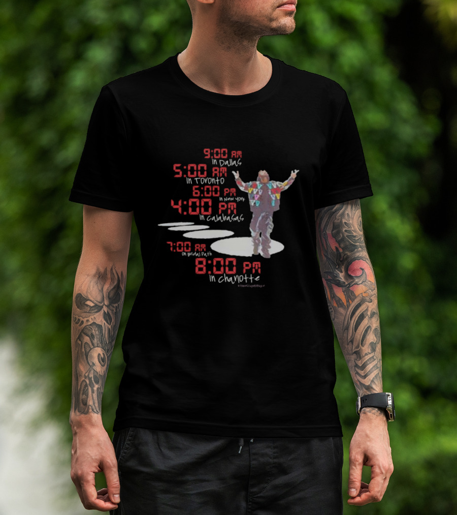 Time Stamp Drake 9:00 AM Dallas 5:00 AM Toronto 6:00 PM New York 4:00 PM Calabasas 7:00 AM Bridal Path 8:00 PM Charlotte T-Shirt