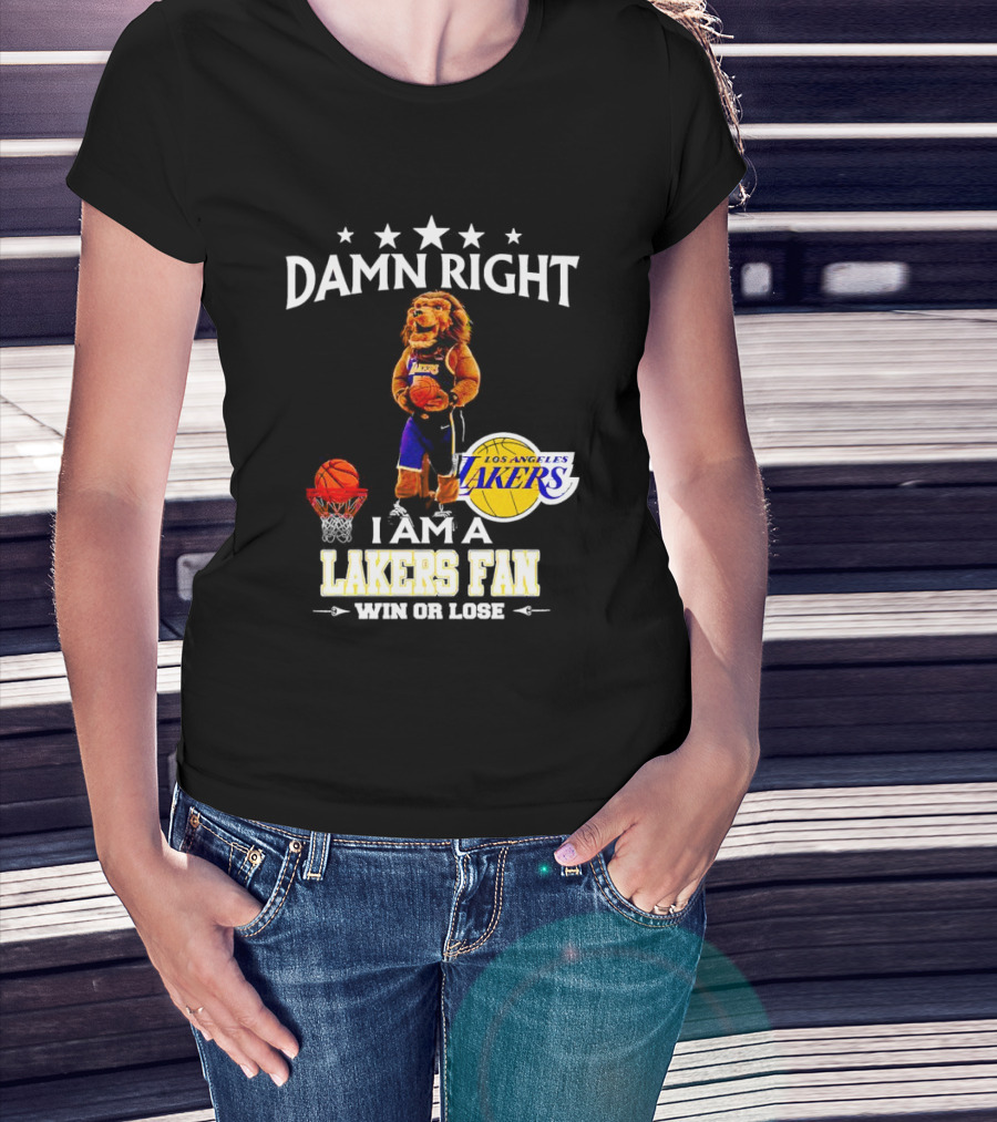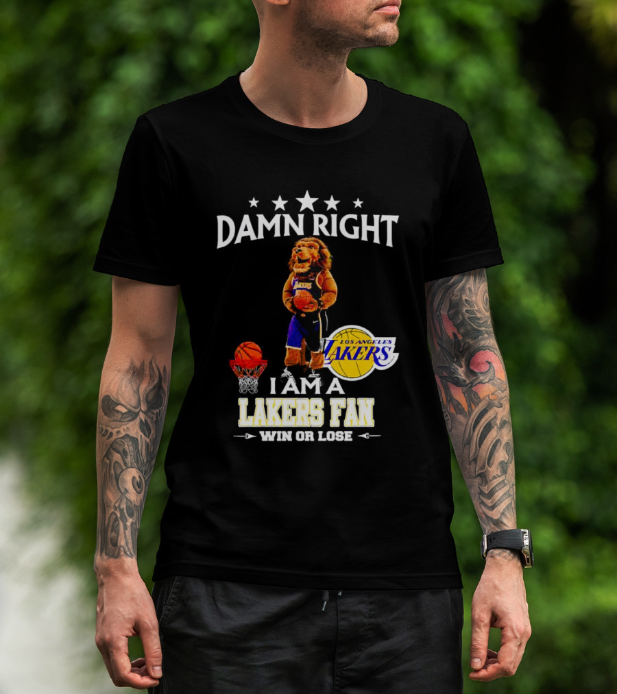 Damn Right I Am A Los Angeles Lakers Fan Win Or Lose Basketball Mascot T-Shirt