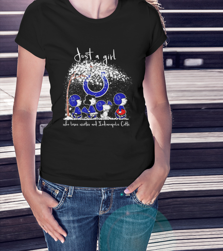 The Just a Girl Who Loves Winter and Indianapolis Colts Peanuts Characters T-shirt is designed for everyday wear and a consistent fit. Fabric is pre-shrunk ring-spun cotton with durable stitching. See the size chart below for exact measurements.