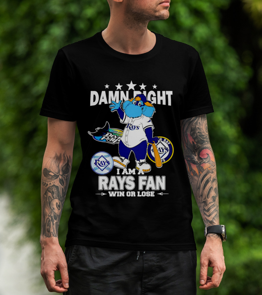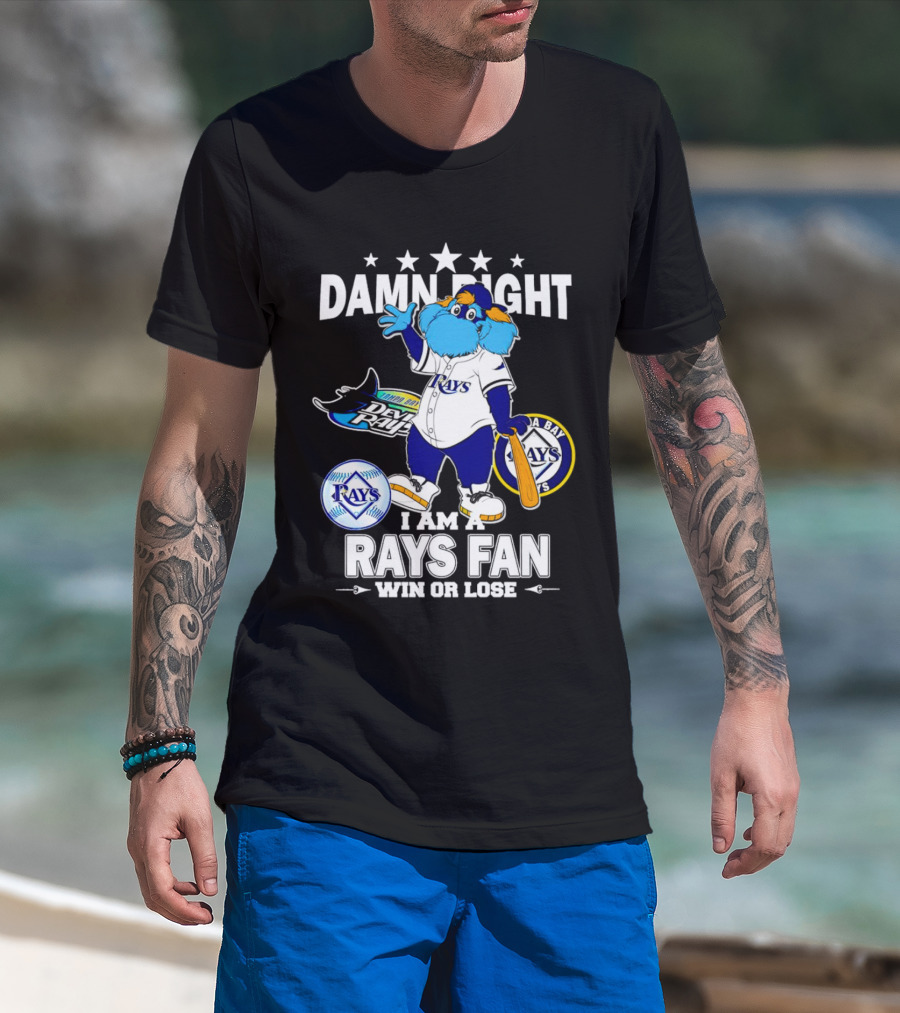 Damn Right I Am A Tampa Bay Rays Fan Win Or Lose With Mascot T-Shirt