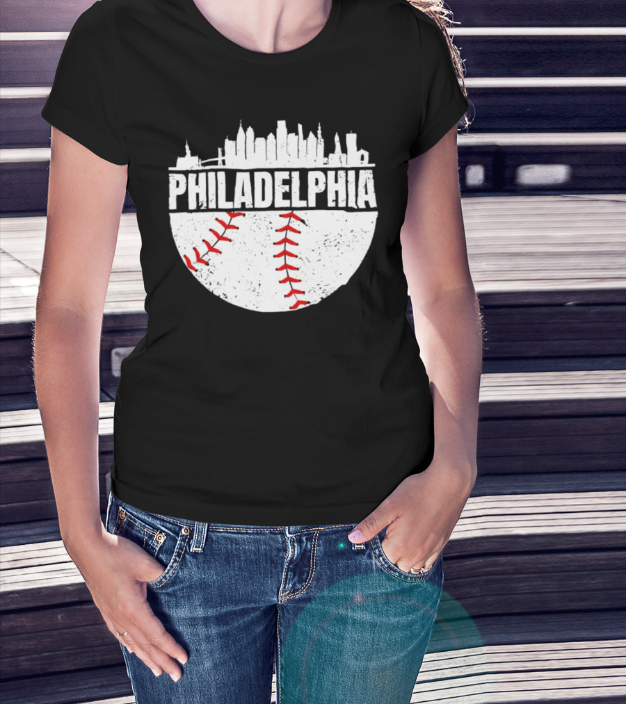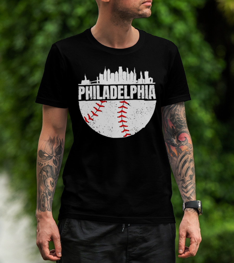 The Philadelphia Skyline Baseball Urban T-shirt is designed for everyday wear and a consistent fit. Fabric is pre-shrunk ring-spun cotton with durable stitching. See the size chart below for exact measurements.