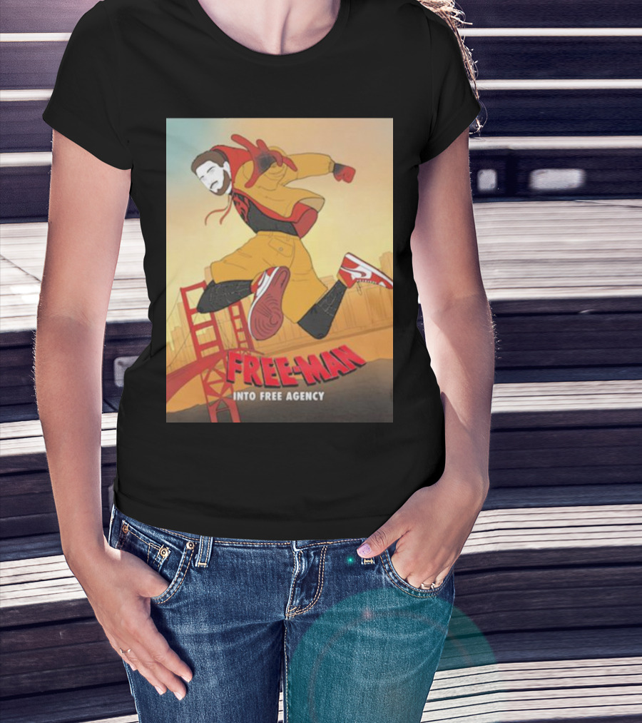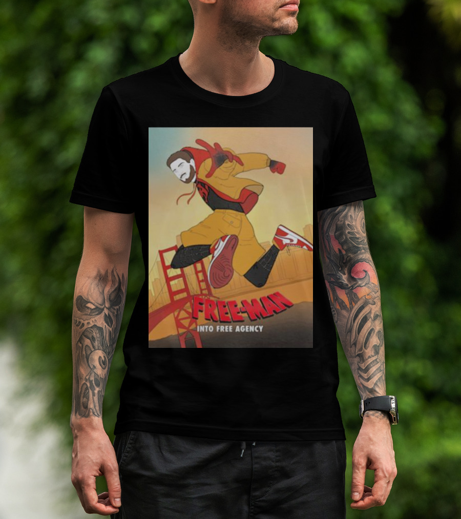 FREE-MAN Into Free Agency San Francisco Bridge Jumping Character T-Shirt