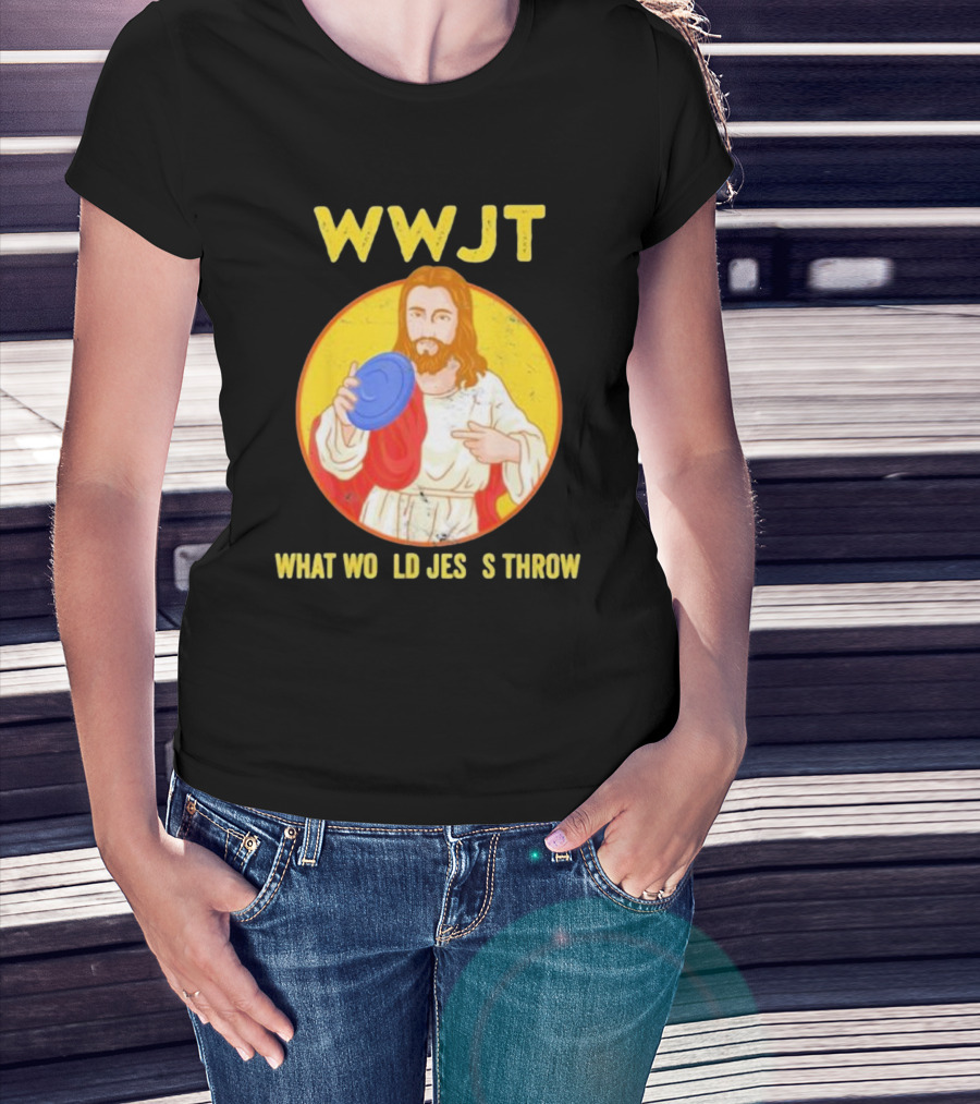 WWJT What Would Jesus Throw Frisbee Golf T-Shirt